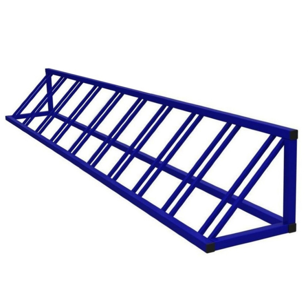 Вместимость: 10 велосипедов. Длина: 2,9 м. Конструкция: цельносварная. Материал: прочная сталь с износостойким полимерным покрытием. Крепление: анкерное, отверстия подготовлены.