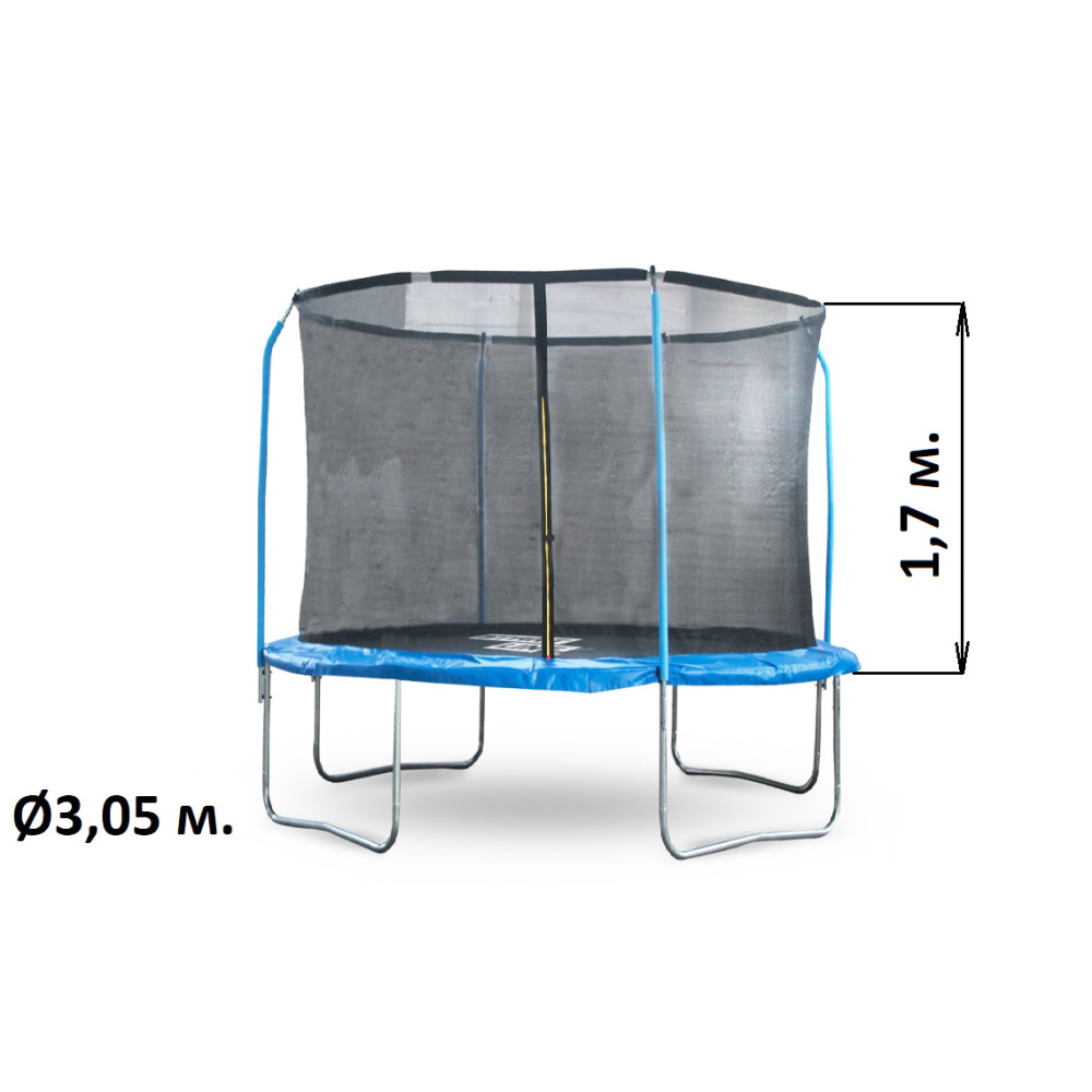 Батут 10 футов (3,05 м) с внутренней сеткой и держателями прекрасно подходит для размещения на открытых площадках. Высокое качество используемых в производстве материалов обеспечивает долговечность изделия даже при постоянном использовании. Стальные пружины, нейлоновая защитная сетка, полипропилен с защитой от УФ-излучения.