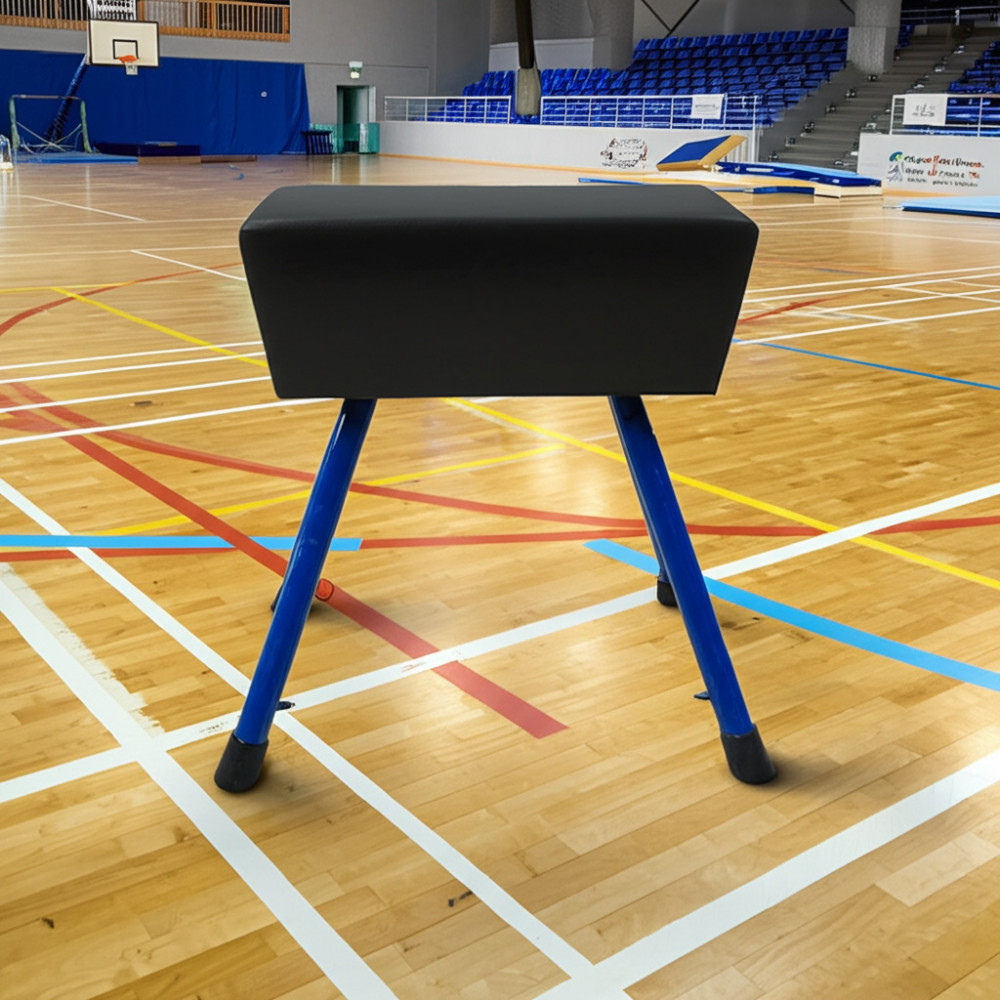 Гимнастический козел стабильно стоит на поверхности благодаря резиновым прокладкам на ножках и ручкам, которые регулируют положение гимнастического козла на неоднородной поверхности. Корпус регулируется по высоте с шагом в 5 сантиметров и может комплектоваться специальными креплениями к полу для стационарного использования в зале. Максимальная высота составляет 135 см.
