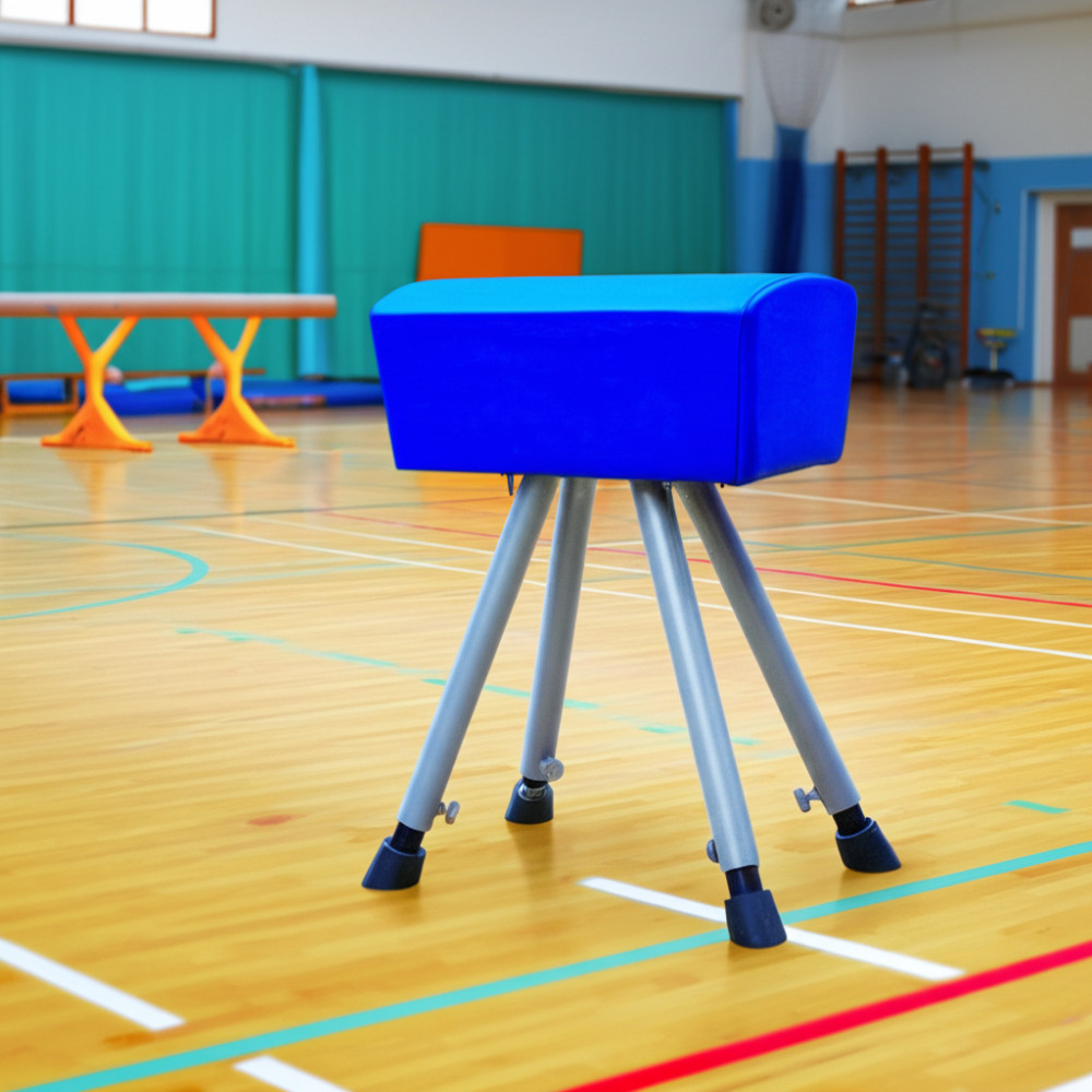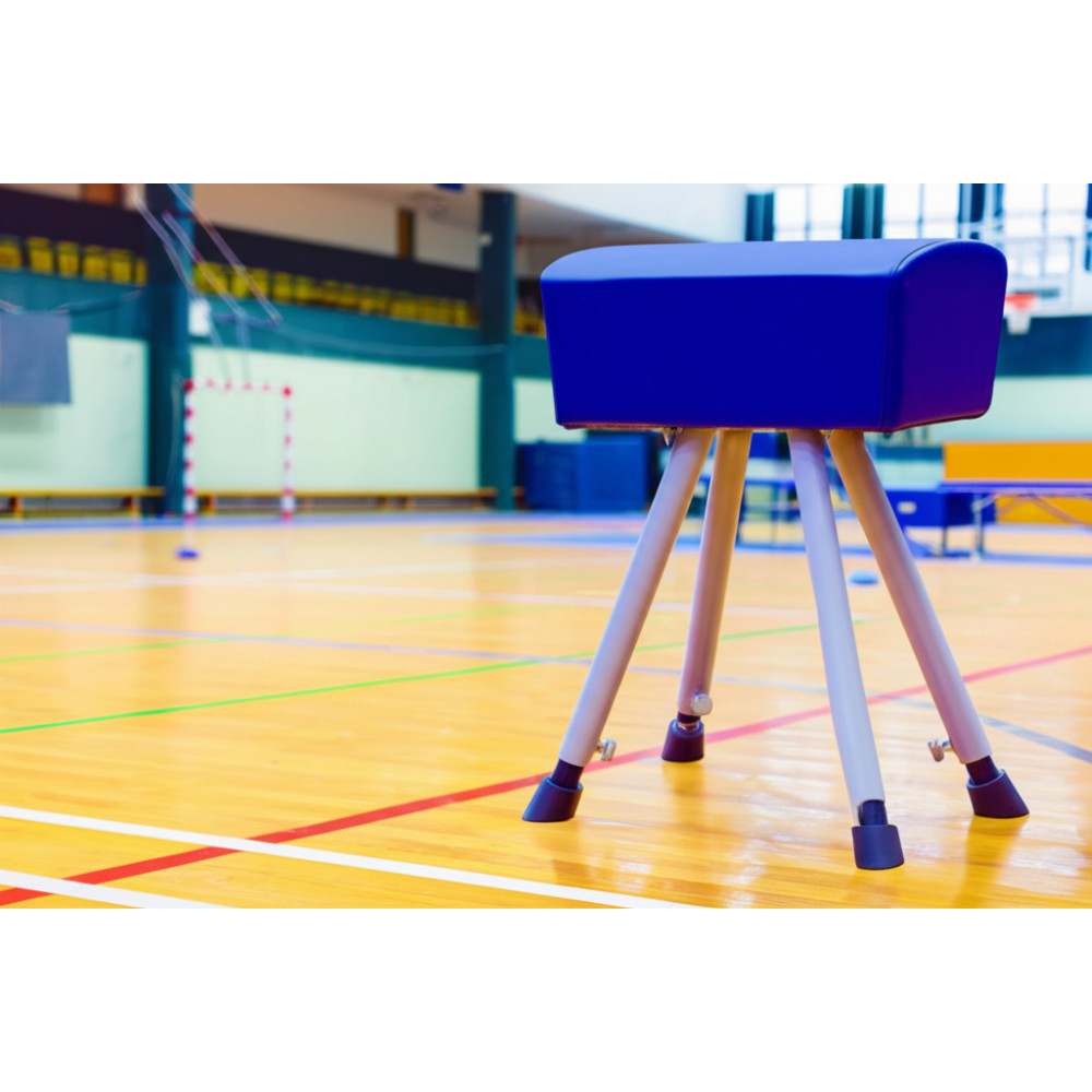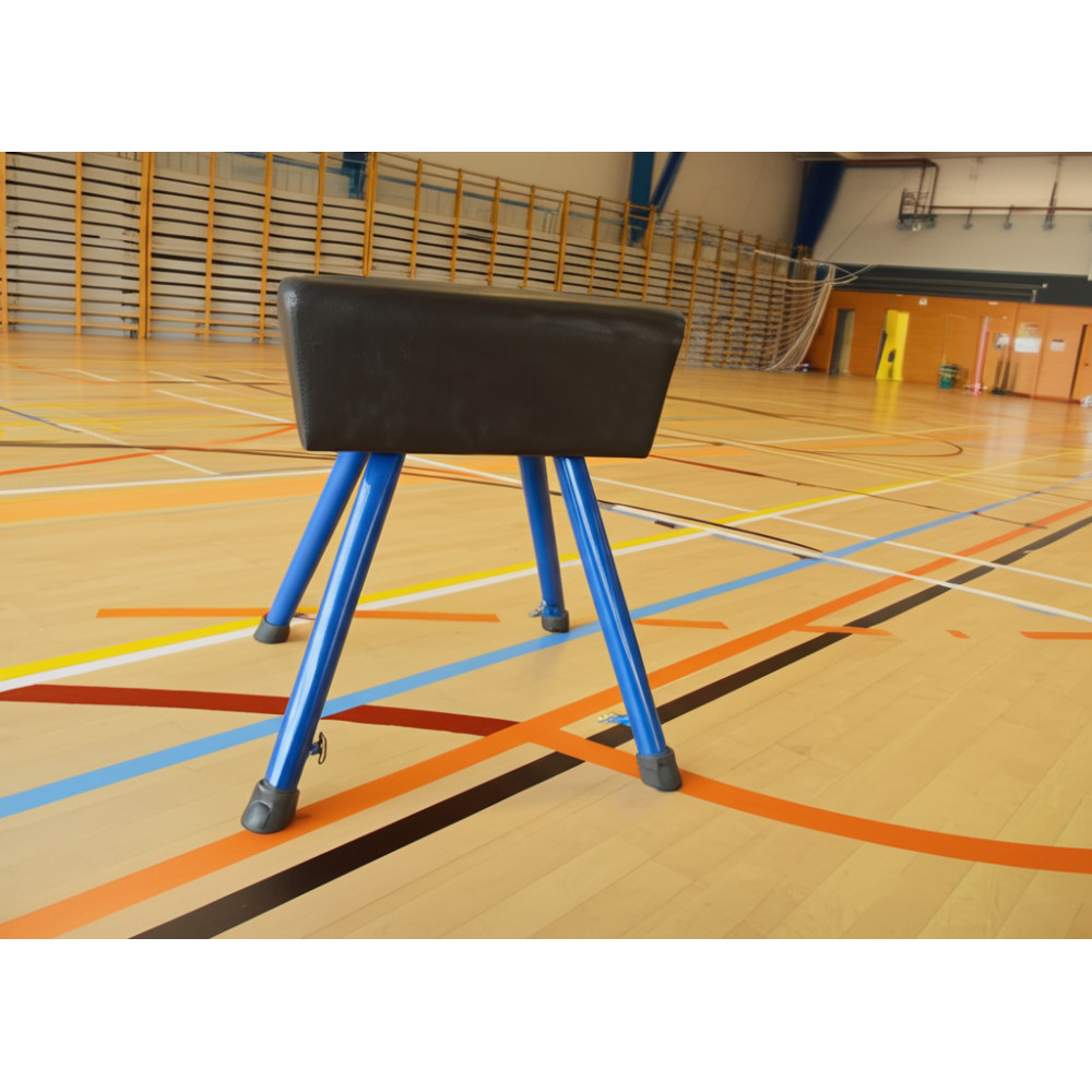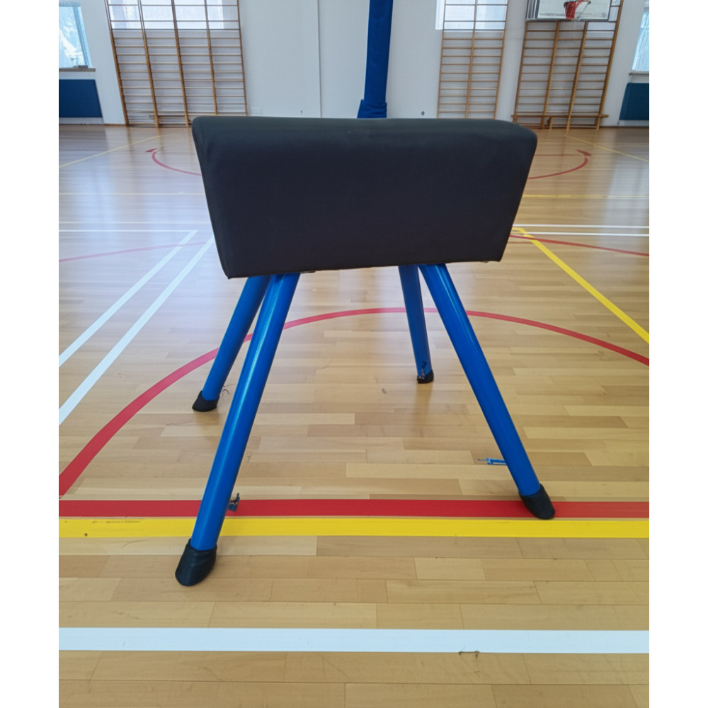 Козел обладает устойчивость на поверхности, за счет конструкции зажимов и стоек. Регулировка козла на неровной поверхности делает спортивный снаряд универсальным для любого пола.