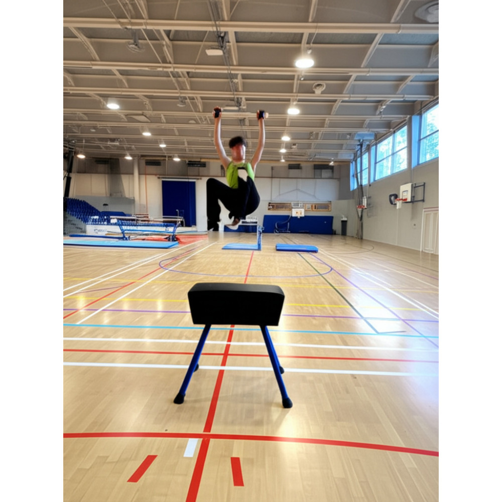 Козел гимнастический используется в сочетании со специальным мостиком для увеличения силы прыжка спортсмена.