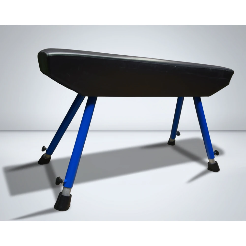 Гимнастический конь по своей конструкции он представляет из себя корпус сделанный дерева, покрытый винил-кожей и установленный на четырёх, в распорку, выдвижных стальных опорах.