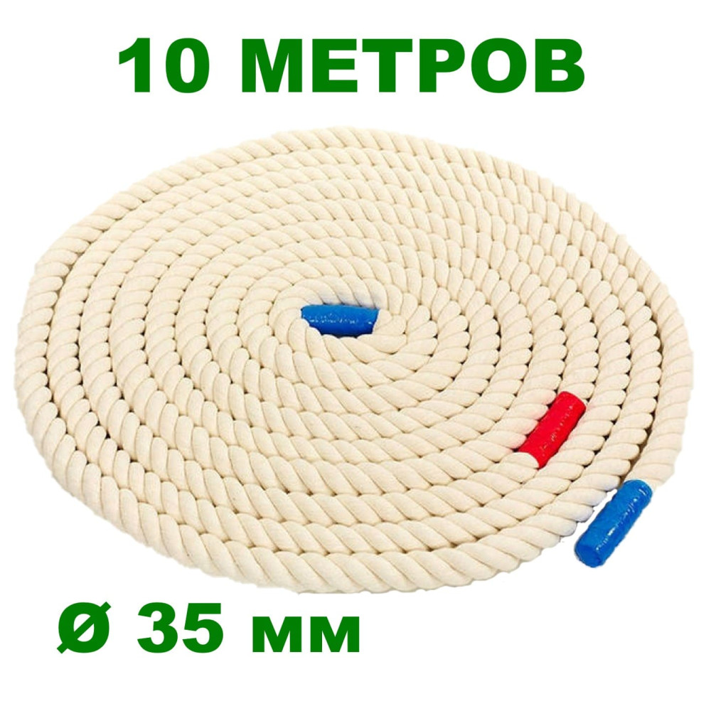 Канат хлопчатобумажный длиной 10 метров с двух сторон имеет заглушки. Диаметр каната данной модели: 35 мм. Это средний размер, подойдет как для подростков, так и для взрослых. Может быть использован как детский канат для перетягивания, потому как при создании использованы полностью безопасные материалы.