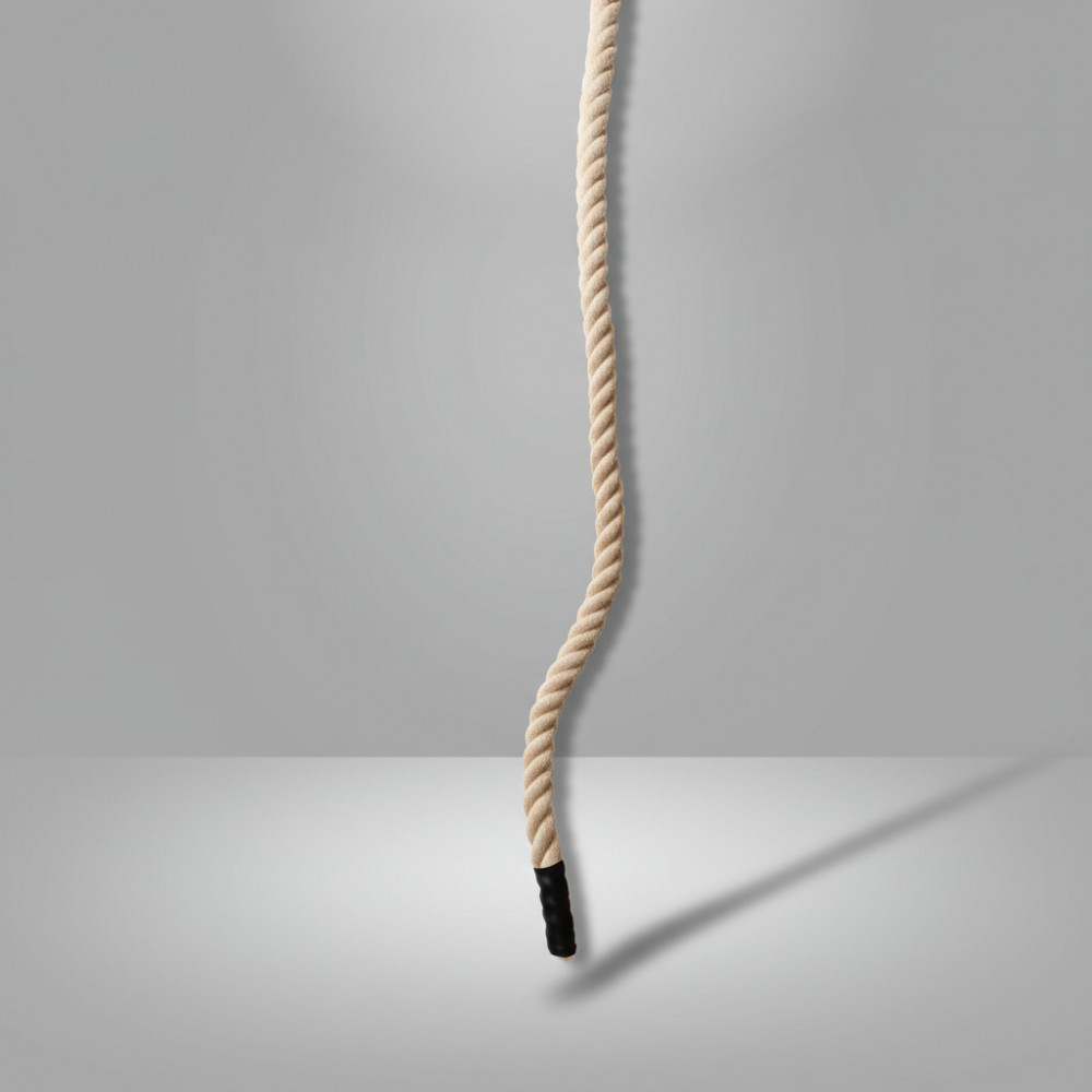 Идеальный канат для профессионалов: Хлопчатобумажный канат для лазанья длиной 600 см и диаметром 50 мм. Есть металлическая петля для фиксирования на стене.
