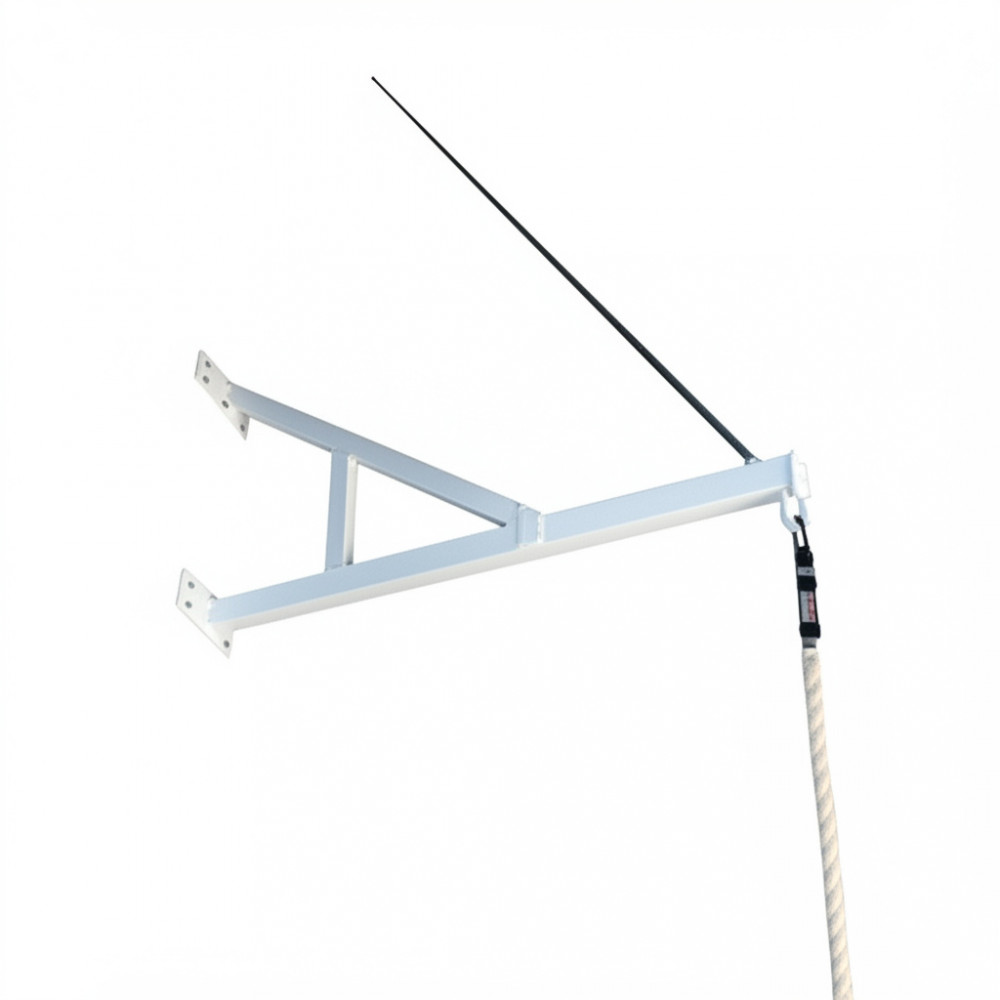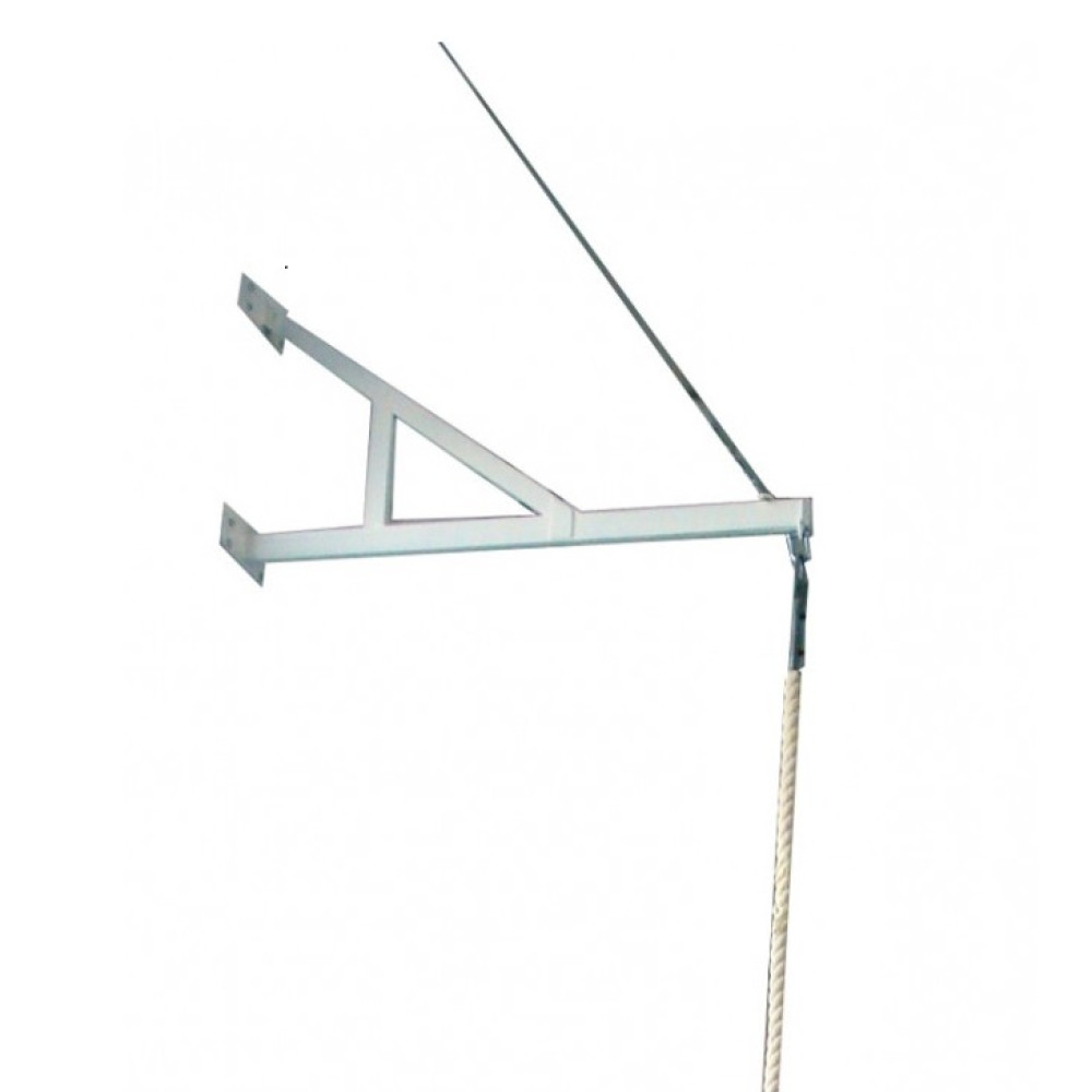 Настенная консоль для каната длиной 2 метра с максимальной грузоподъемностью 450 кг изготовлена из прочного металла и предназначена для установки в спортивных залах.