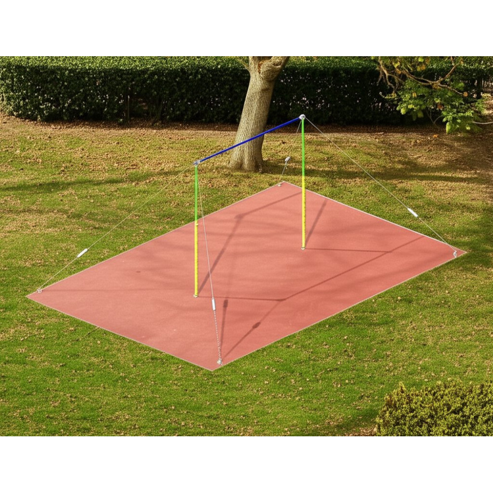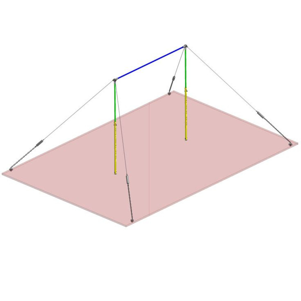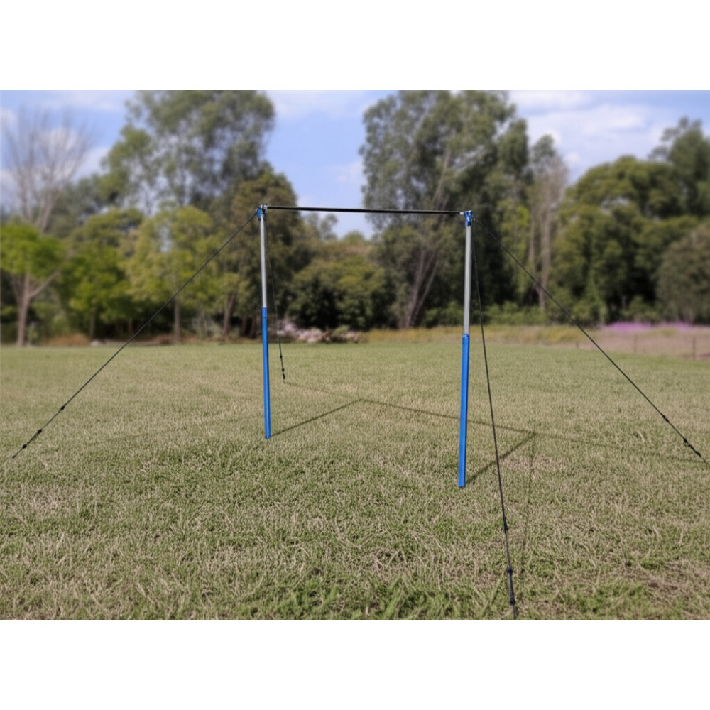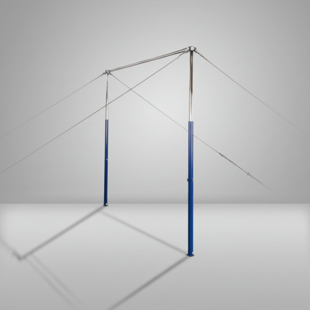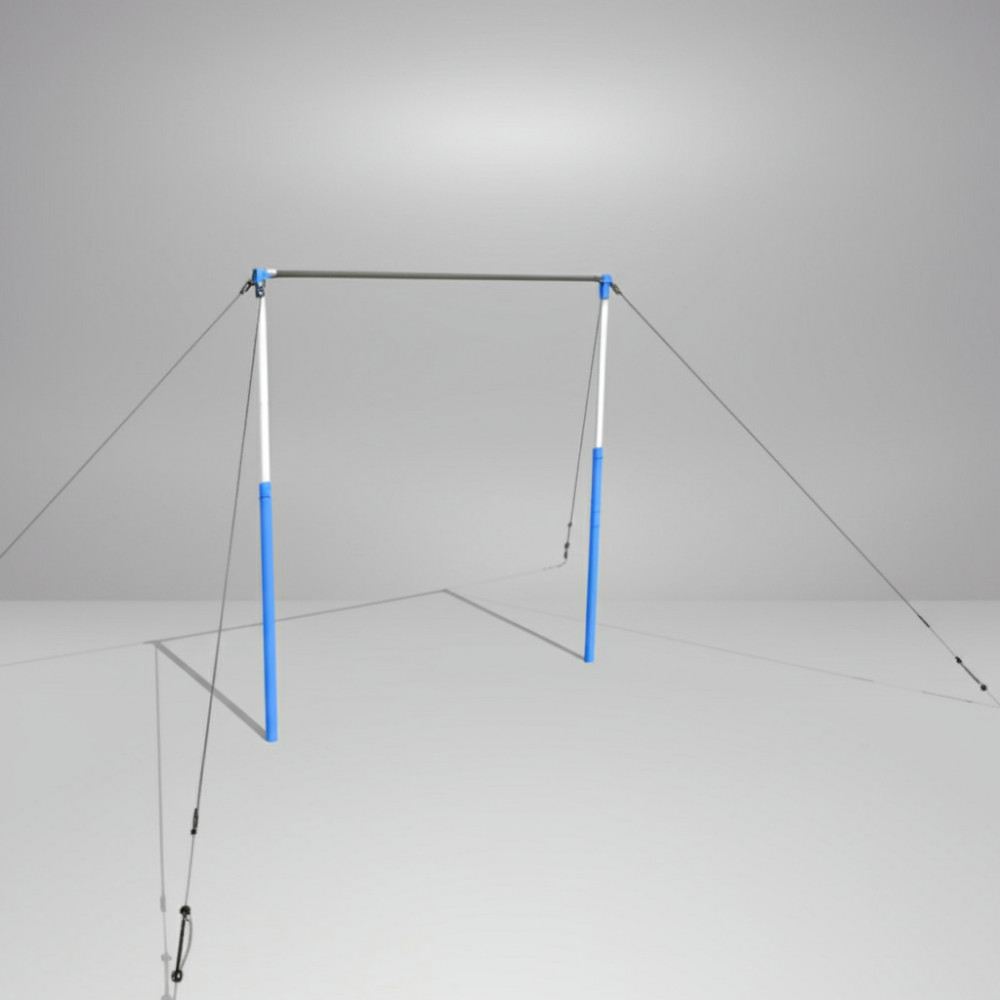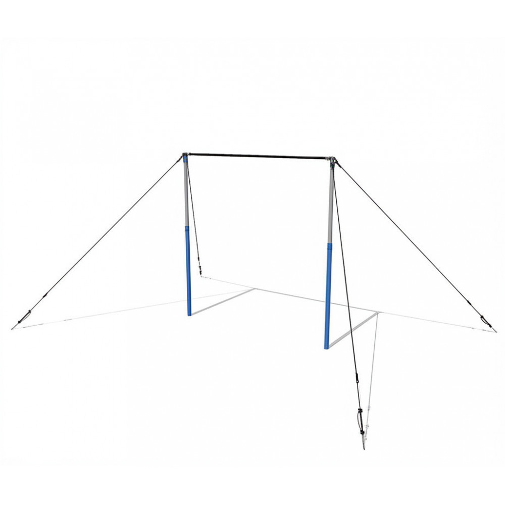 Состоит из стержня, пары телескопических стоек, специальных растяжек (4 растяжки: цепь, трос, талреп) и комплекта креплений. Предусмотрена возможность регулировать высоту снаряда по высоте спортсменов и выполняемому упражнению.