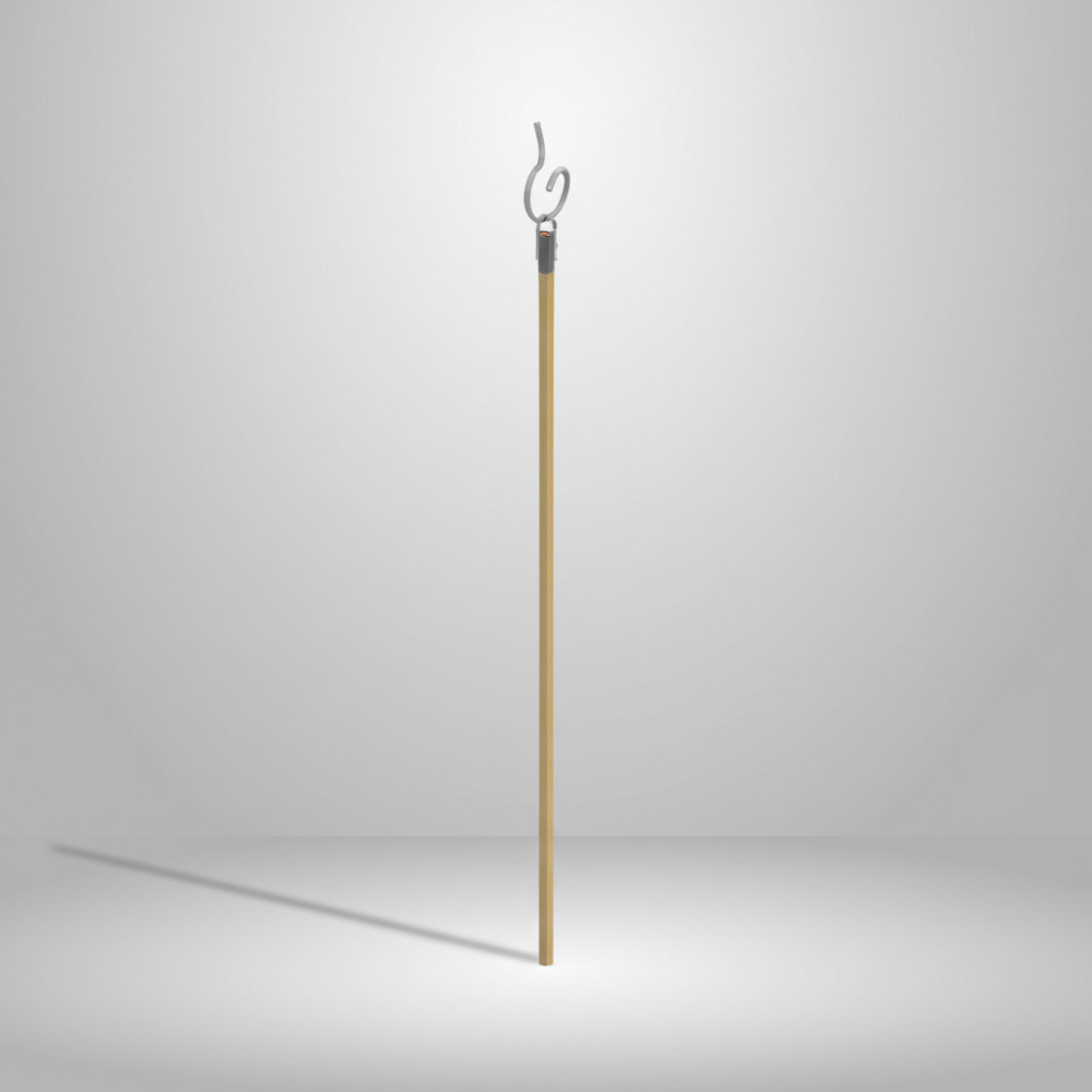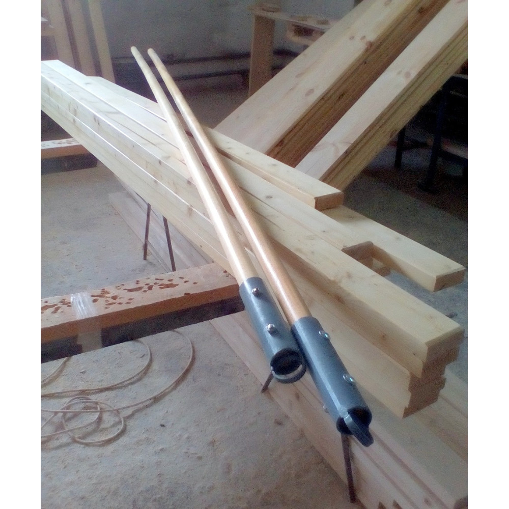 Шест оснащен креплением для консоли, которую можно купить у нас в магазине. Шест представляет собой палку из березы 500 см покрытую лаком. На одном конце расположено кольцо для крепления шеста к консоли.