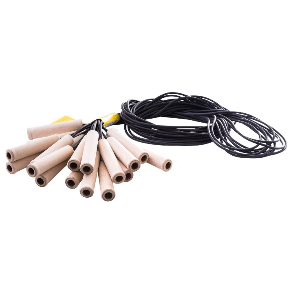 Скакалка резиновая с деревянной ручкой, длина 2,80 м, доступна в ассортименте цветов, идеально подходит для школы и спортивных залов.