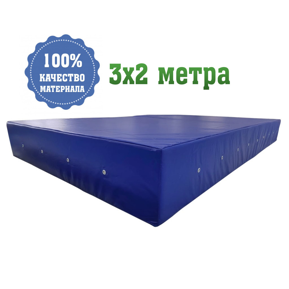 Зона приземления размером 3х2 метра, армированная, изготовлена из устойчивого ПВХ и наполнена полиуретановой пеной для эффективного поглощения ударов.