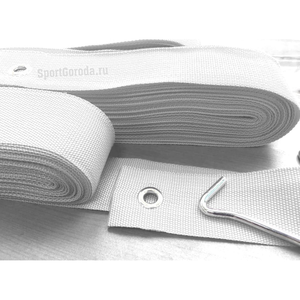 Ленты оснащены люверсами, что обеспечивает надежное соединение с металлическими штырями, позволяя натягивать разметку на поверхности игровой площадки.