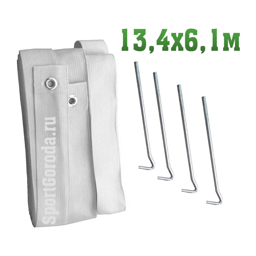Лента белого цвета для разметки площадки для игры в бадминтон размерами 13,4х6,1 метра, включающая 4 ленты и 4 колышка для фиксации.