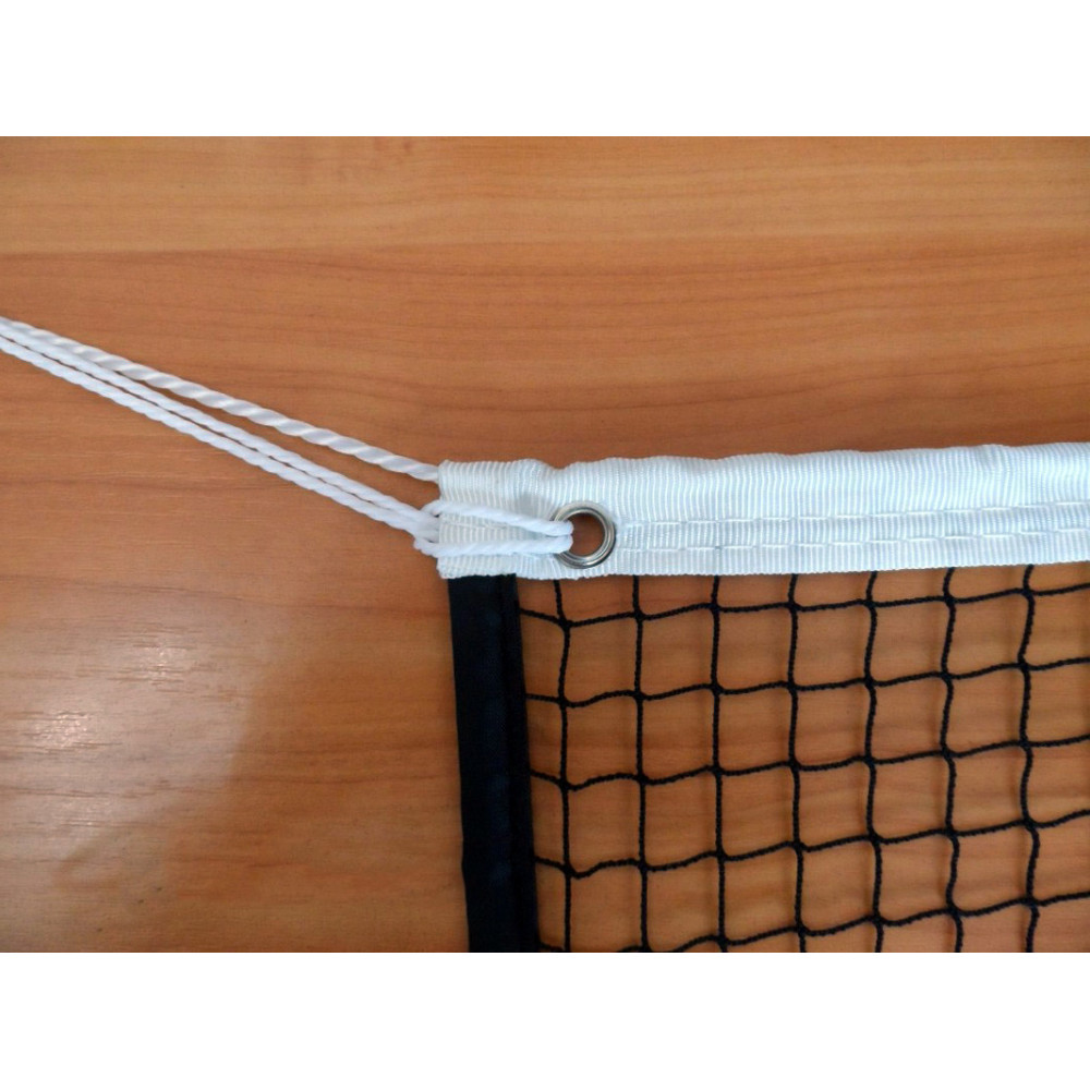 Сетка для бадминтона размером 0,76 x 6,00 м, выполненная из прочного полипропилена с тросом диаметром 1,6 мм, предназначенная для активных игр и тренировок.