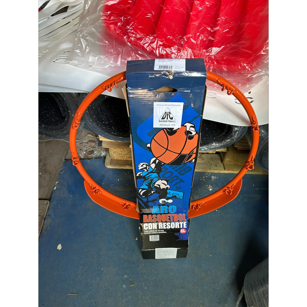 Кольцо баскетбольное R3 с диаметром 45 см, предназначенное для профессиональных и тренировочных целей, оснащено двумя пружинами для эффективной амортизации.