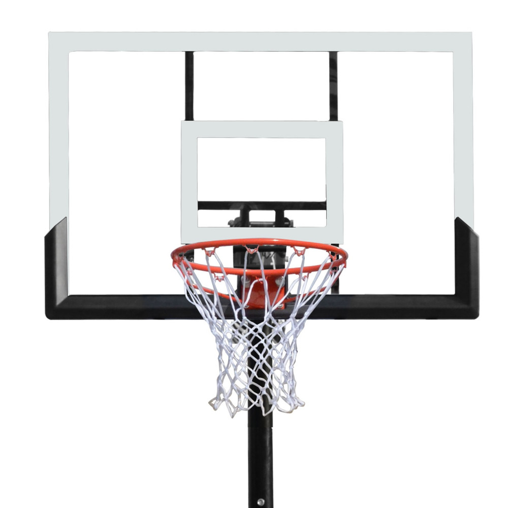 Кольцо диаметром 45 см выполнено в ярком оранжевом цвете, а всепогодная нейлоновая сетка обеспечивает долговечность даже при частом использовании. Щит толщиной 3,5 мм изготовлен из поликарбоната, дополнительно усилен стальным профилем по периметру для повышения прочности и устойчивости.