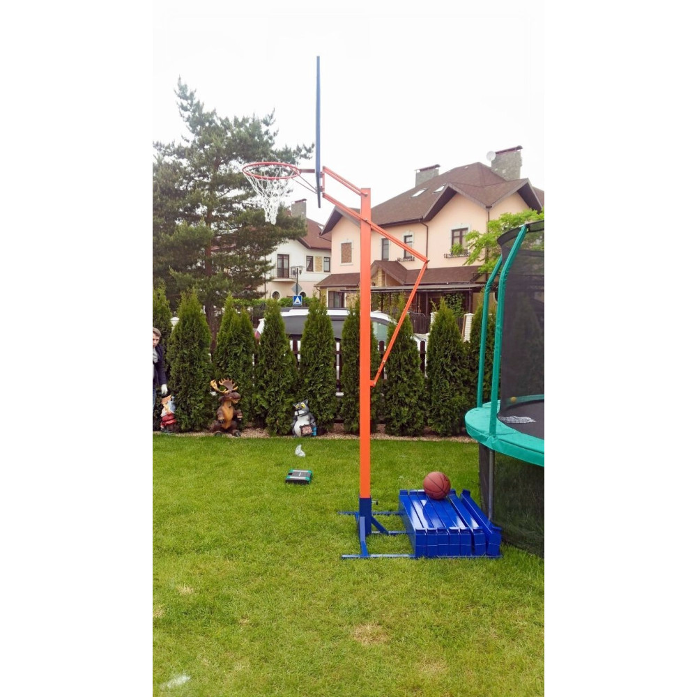 Конструкция имеет ступенчатую регулировку баскетбольного щита по высоте. Основание имеет площадку для противовеса. Рекомендуемая масса противовеса - 50-100 кг.