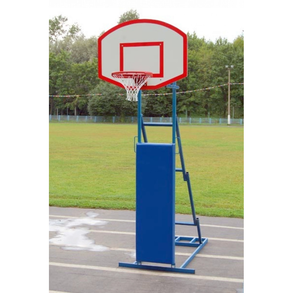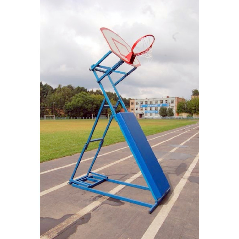 Стойка стритбольная складная с щитом из фанеры, с колесами, кольцом и защитой.