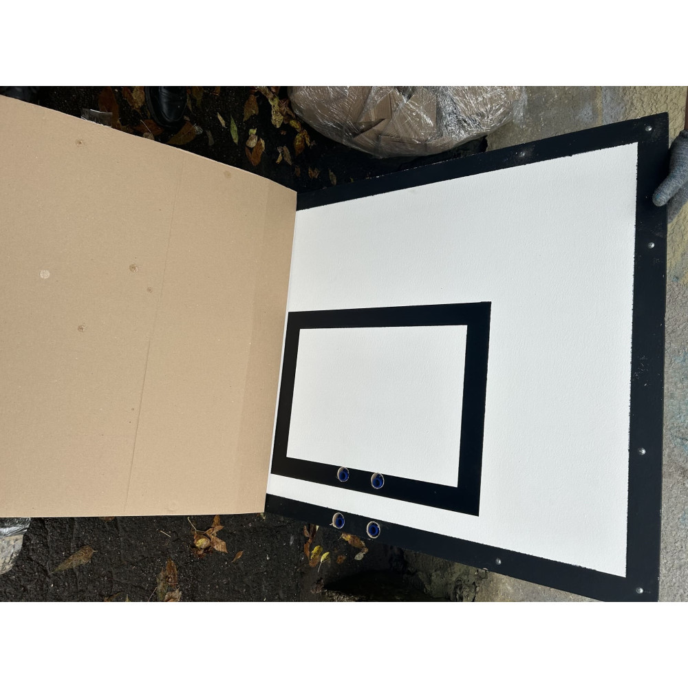 Щит тренировочный из влагостойкой фанеры размером 120х80 см на металлической раме, предназначенный для уличных баскетбольных площадок.