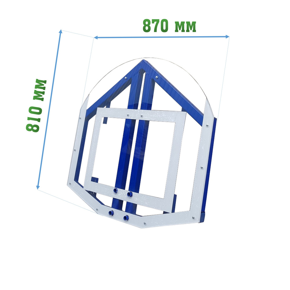 Щит стритбольный с размерами 870х810 мм, выполненный из 10 мм оргстекла на металлической раме, предназначен для уличных соревнований.