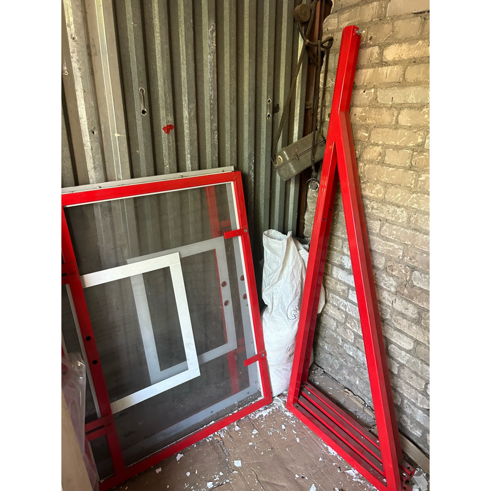 Щит тренировочный для баскетбола из оргстекла размером 120х90 см на металлической раме, предназначен для использования в спортивных залах и на открытых площадках.