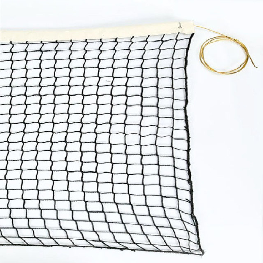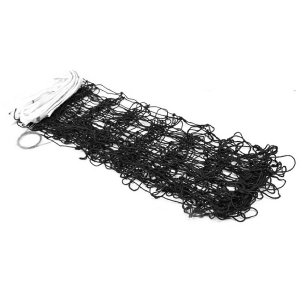 Сетка для пляжного тенниса с толщиной нити 3 мм и стальным тросом в оплетке из ПВХ, обеспечивающая прочность и надежность в использовании.