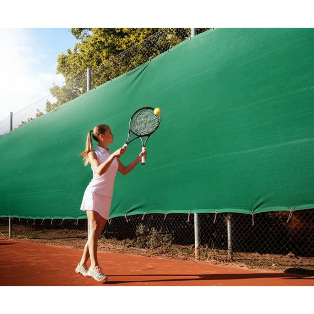 Защитная преграда 2x12 метров для теннисных кортов против ветра. Производство Италия. Отверстия для крепления по длине. Крепеж в комплекте. Плотность ткани 135 гр/м2.