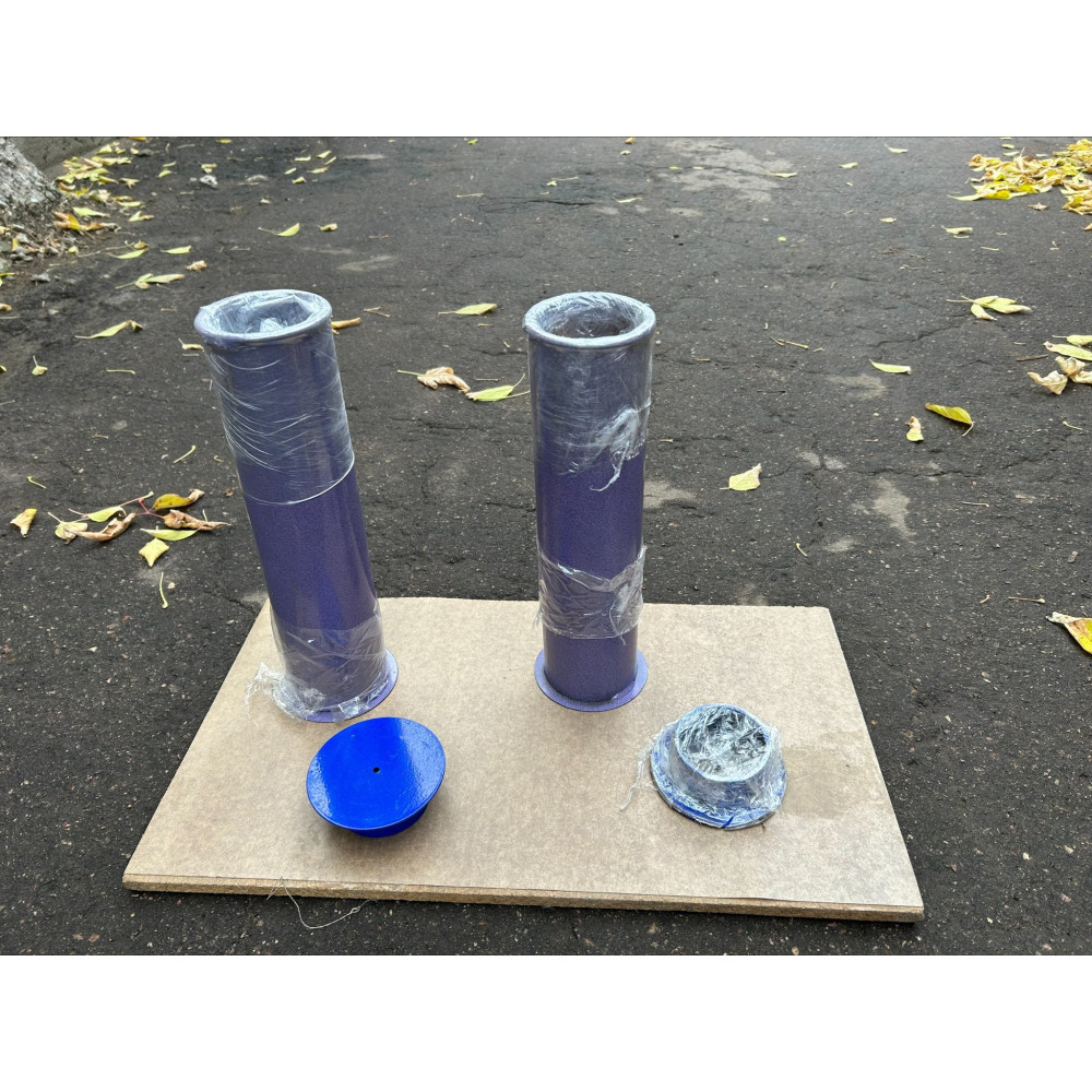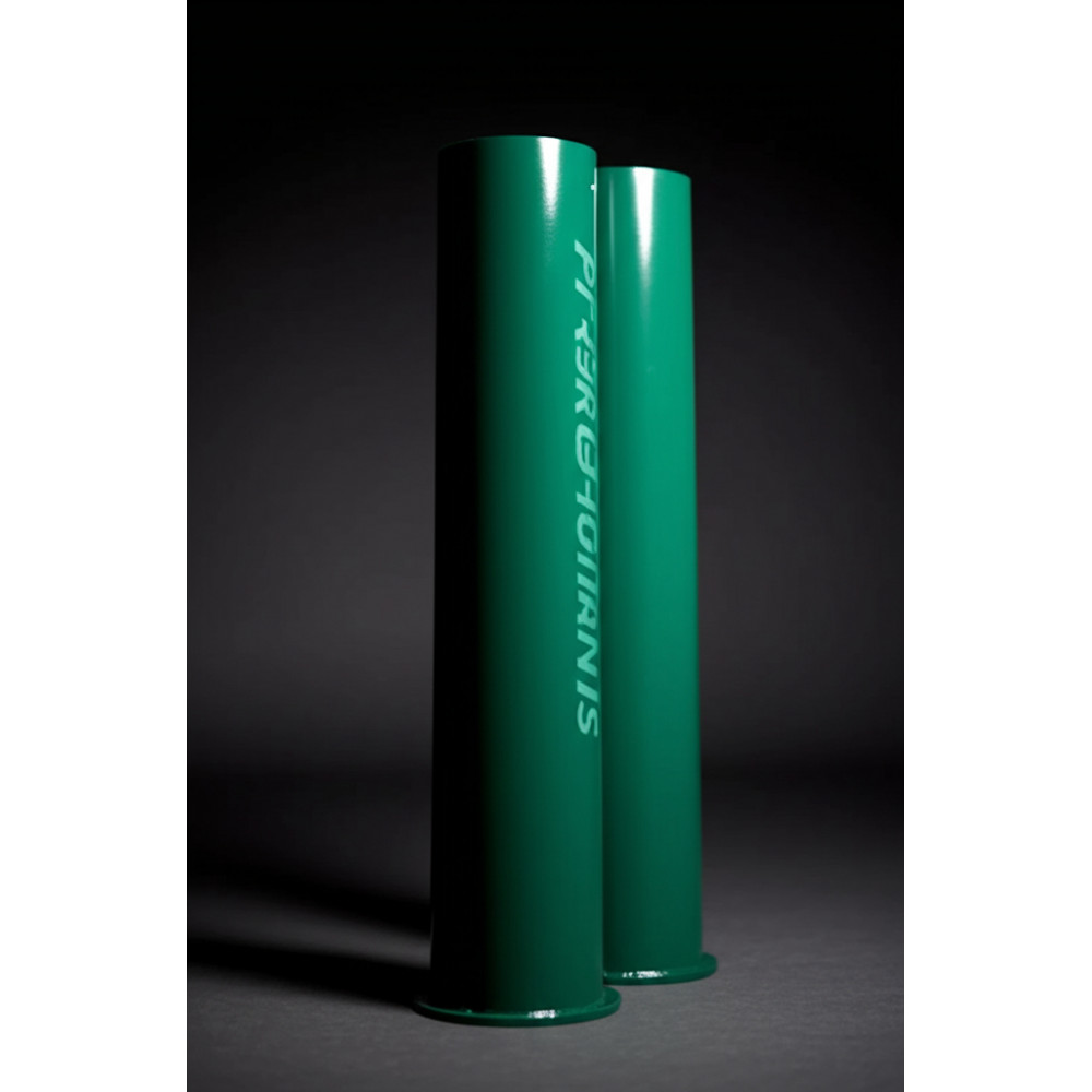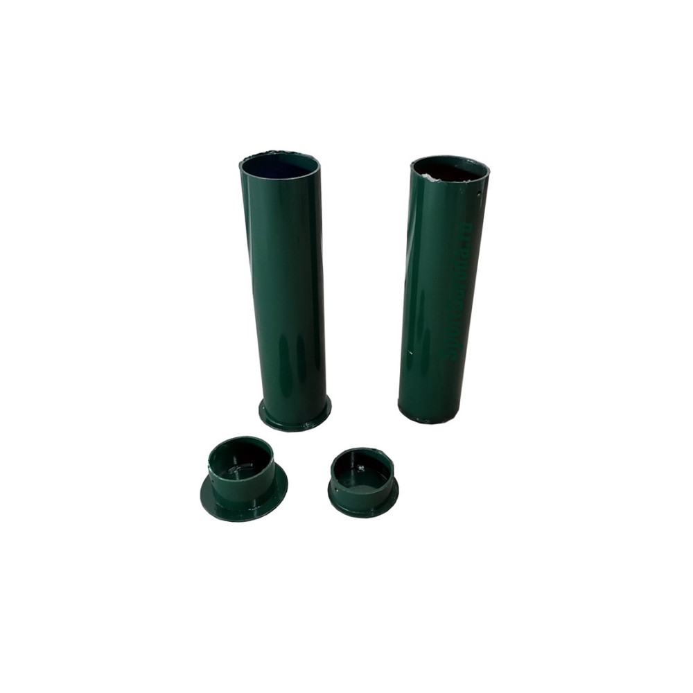 Комплект из двух стаканов для бетонирования волейбольных стоек размером 350x86 мм, делающий установку надежной и стабильной.