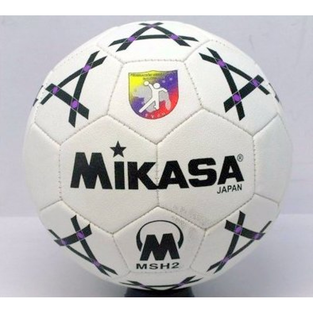 Гандбольный мяч Mikasa MSH2 №2 предназначен для тренировочного процесса, выполнен из синтетической кожи, имеет бело-черный цвет и размер 2 с 32 панелями.