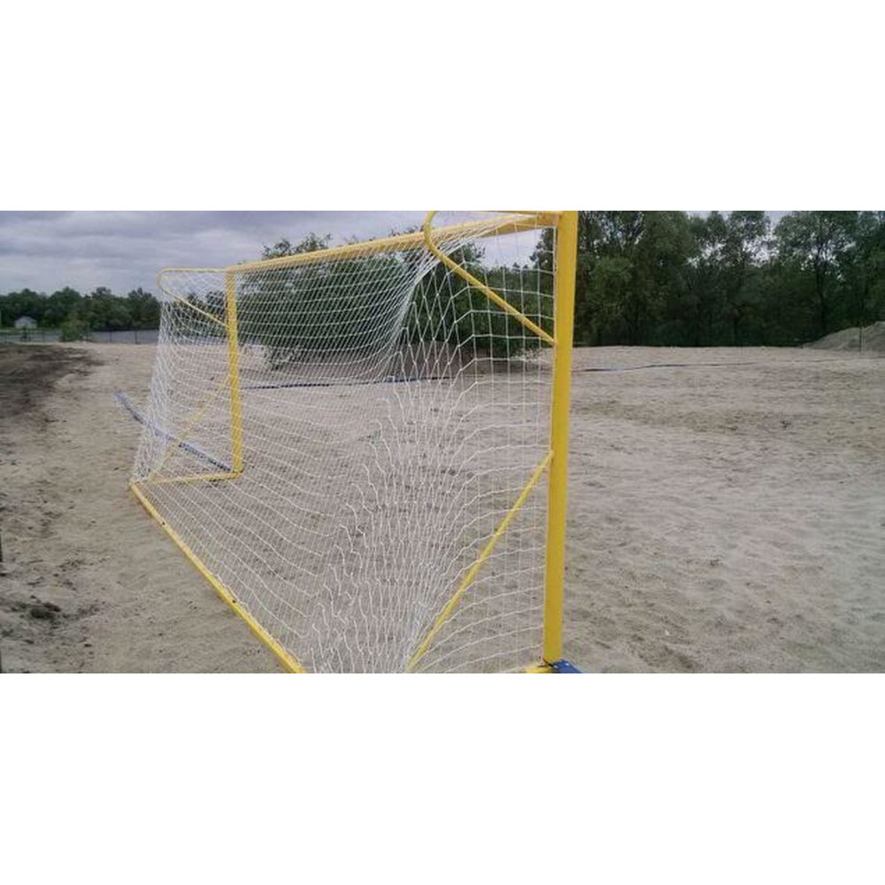 Комплект сеток для пляжного футбола изготовлен из синтетического полипропилена с диаметром нити 2,2 мм белого цвета, обеспечивающего долговечность и устойчивость к погодным условиям. Основные характеристики сетки: