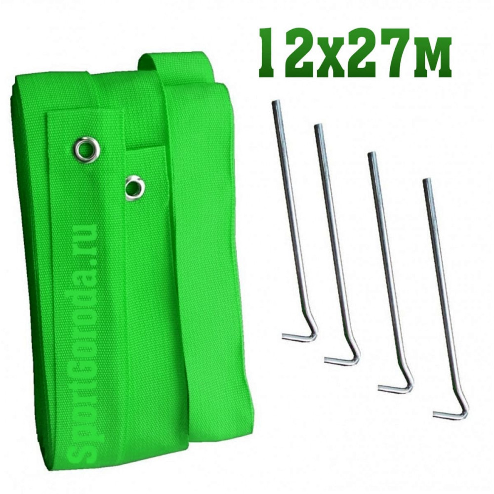Ленты для разметки площадки пляжного футбола размером 12х27 метров, выполненные в зеленом цвете, обеспечивают четкое обозначение игровой территории.