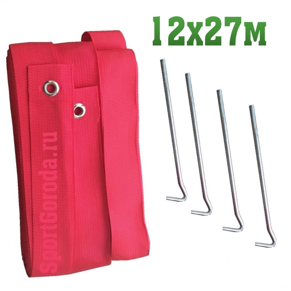 Разметка для пляжного футбола 12х27 метров включает в себя ленты с люверсами и крепления для надежной установки на грунте.