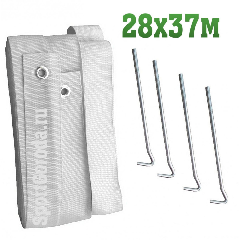 Разметка для пляжного футбола белого цвета размером 28х37 м включает 4 ленты и 4 металлических крепления.
