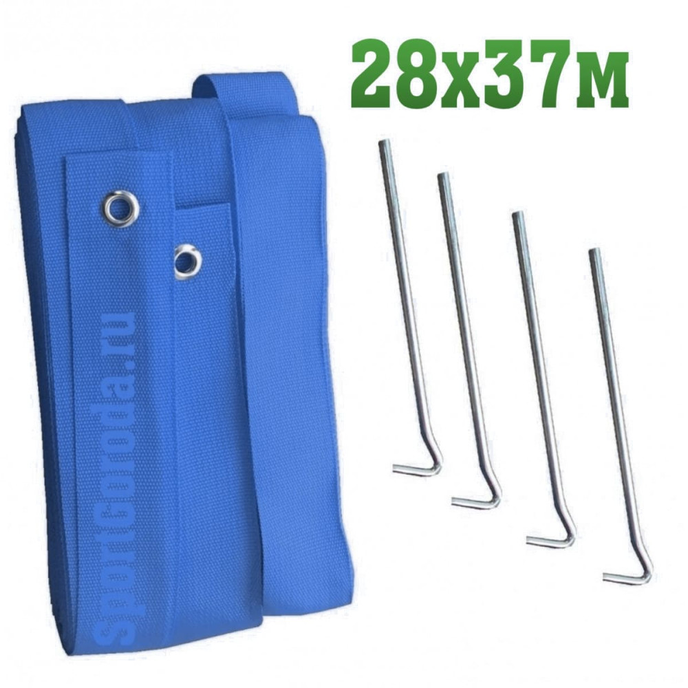 Разметка для пляжного футбола голубого цвета размерами 28х37 м, выполненная из прочного материала и включает 4 ленты с металлическими креплениями.