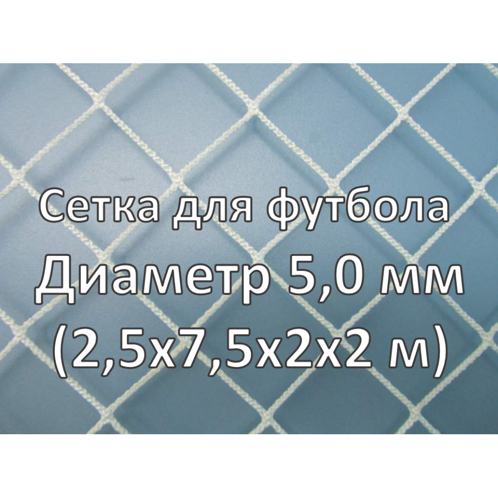 Сетка для футбольных ворот с диаметром нити 5 мм и глубиной 2x2 м, обеспечивающая стабильность и надежность во время игры.