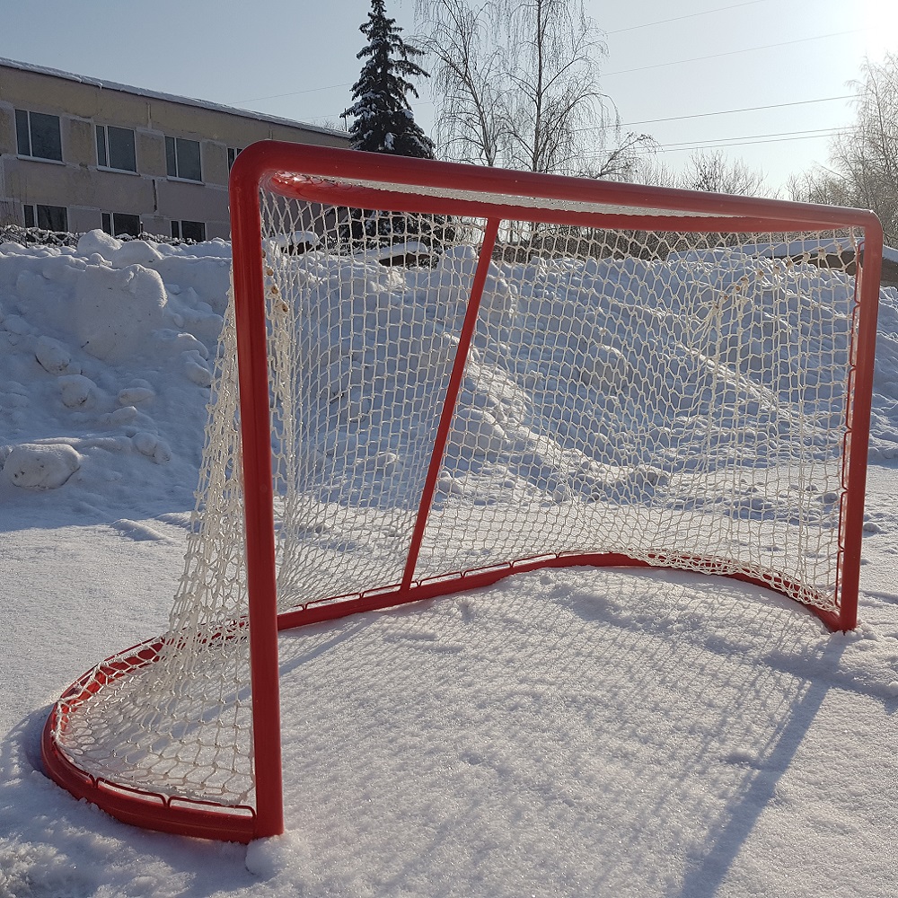 Ворота хоккейные под эластичные фиксаторы размером 183х122 см, предназначенные для профессиональных соревнований и тренировок.
