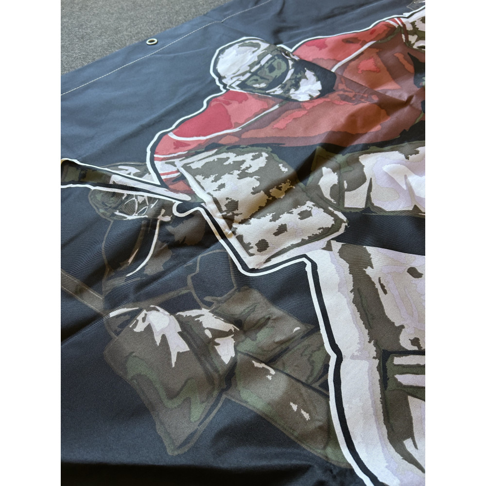 | Наличие рисункада, рисунок вратаря с вырезами | Размеры1,80х1,20м | Метод крепленияэластичные лямки |