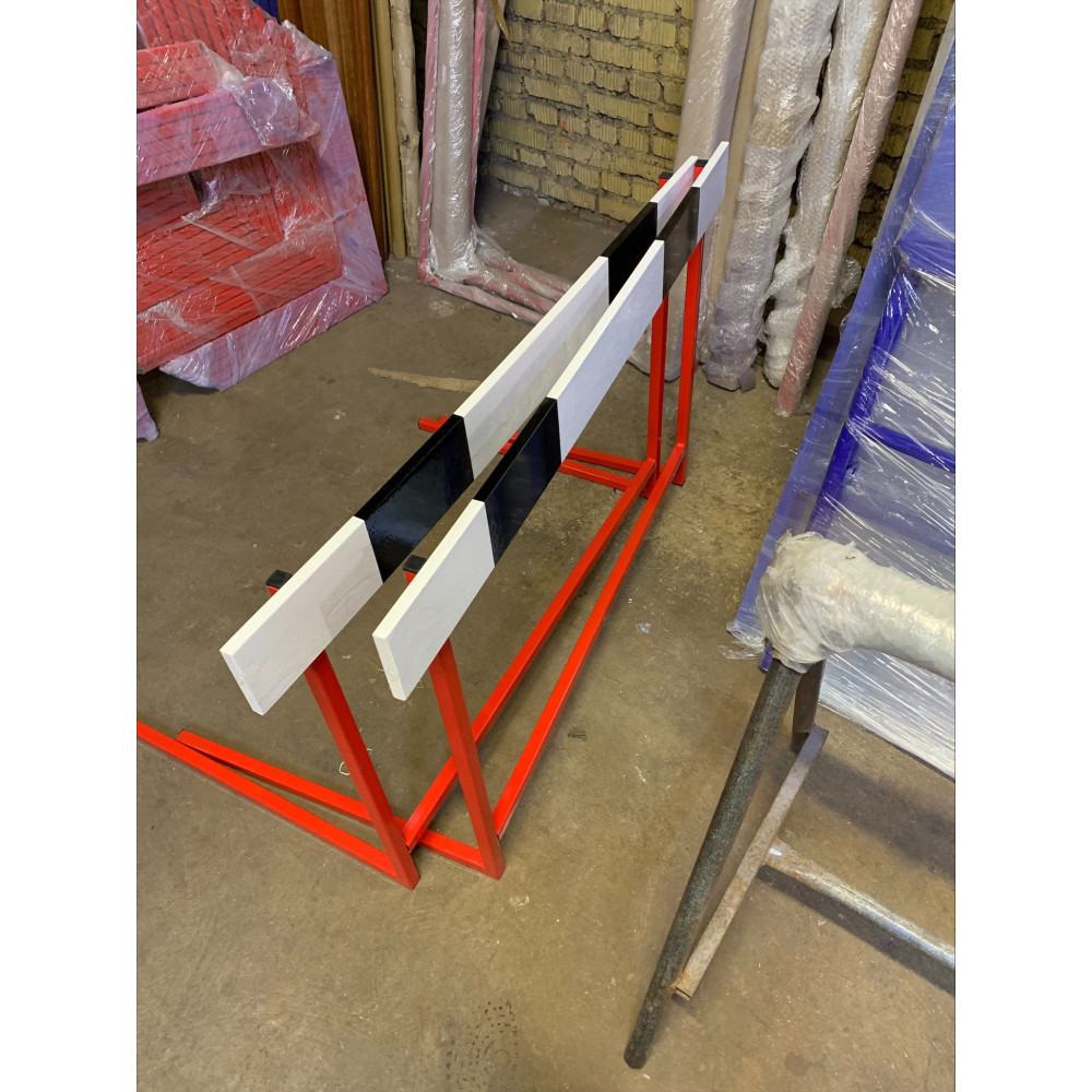 Барьер состоит из двух ножек и расположен по беговой дорожке, где спортсмены должны прыгать, через этот барьер. Размеры самого барьера в профиль 30*30 мм, а горизонтальная ножка 50*25 мм. также планка закреплена на подвижных ножках размеры которой 25*25 мм. Планка покрыта эпоксидной эмалью ЭП-1267, металлические элементы покрашены методом напыления.
