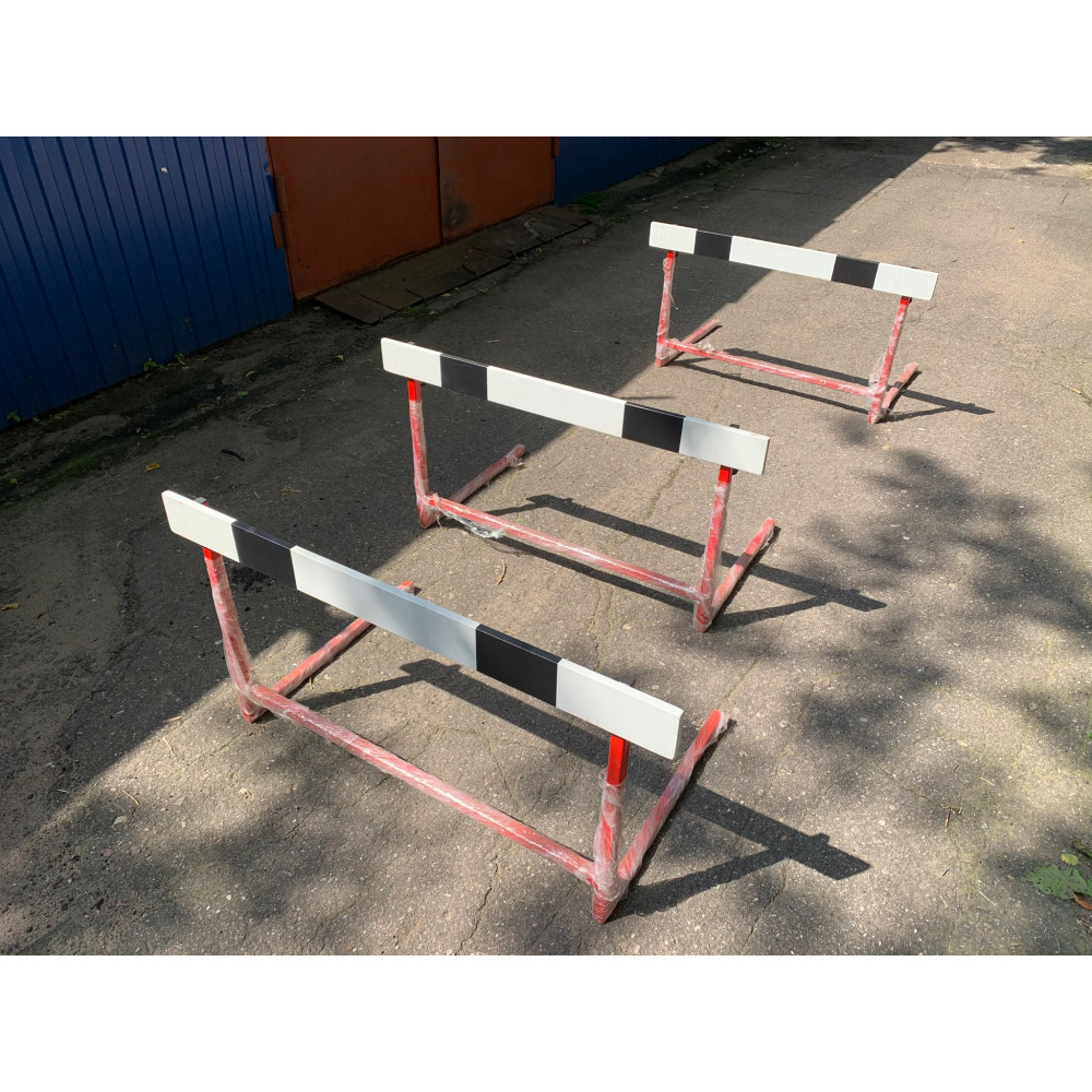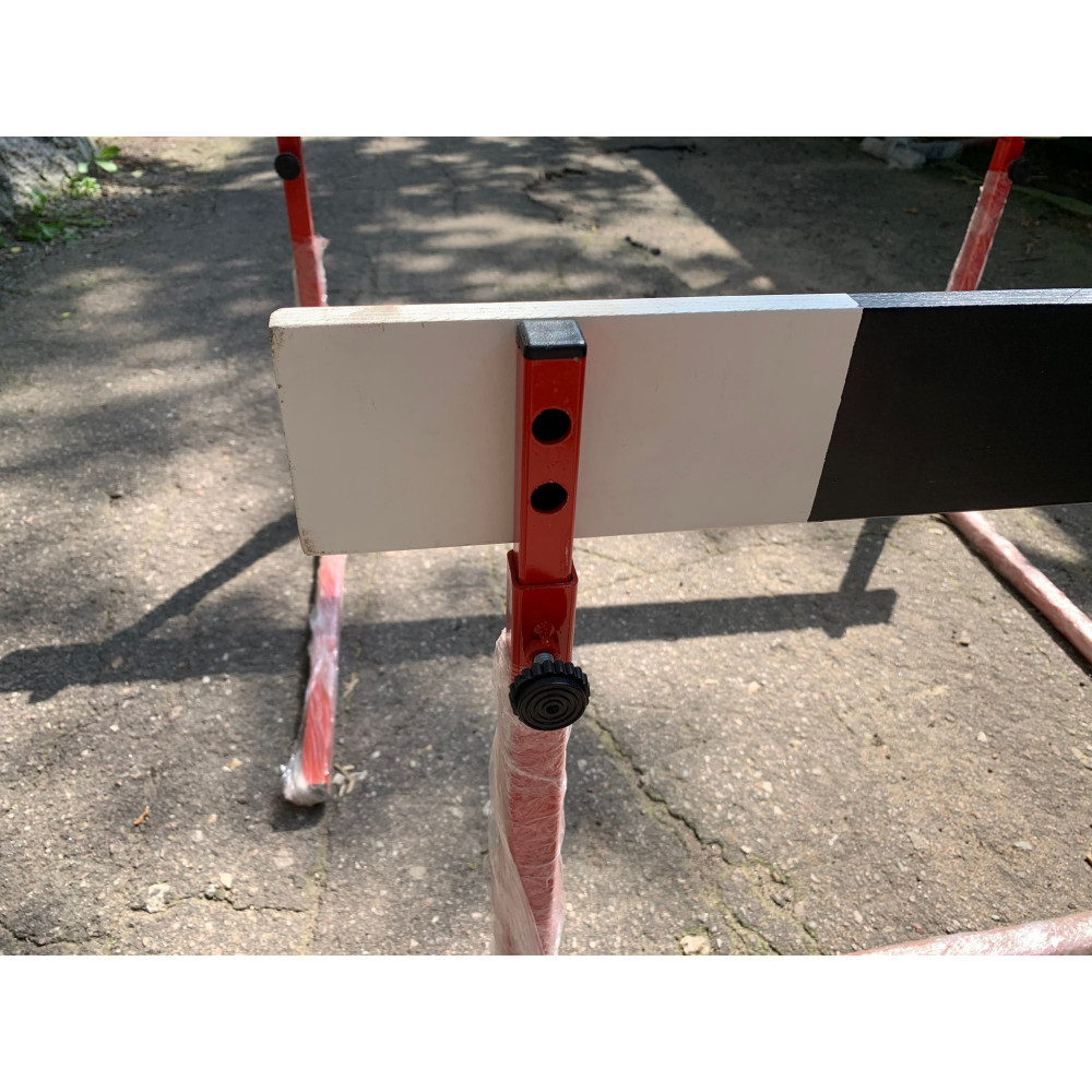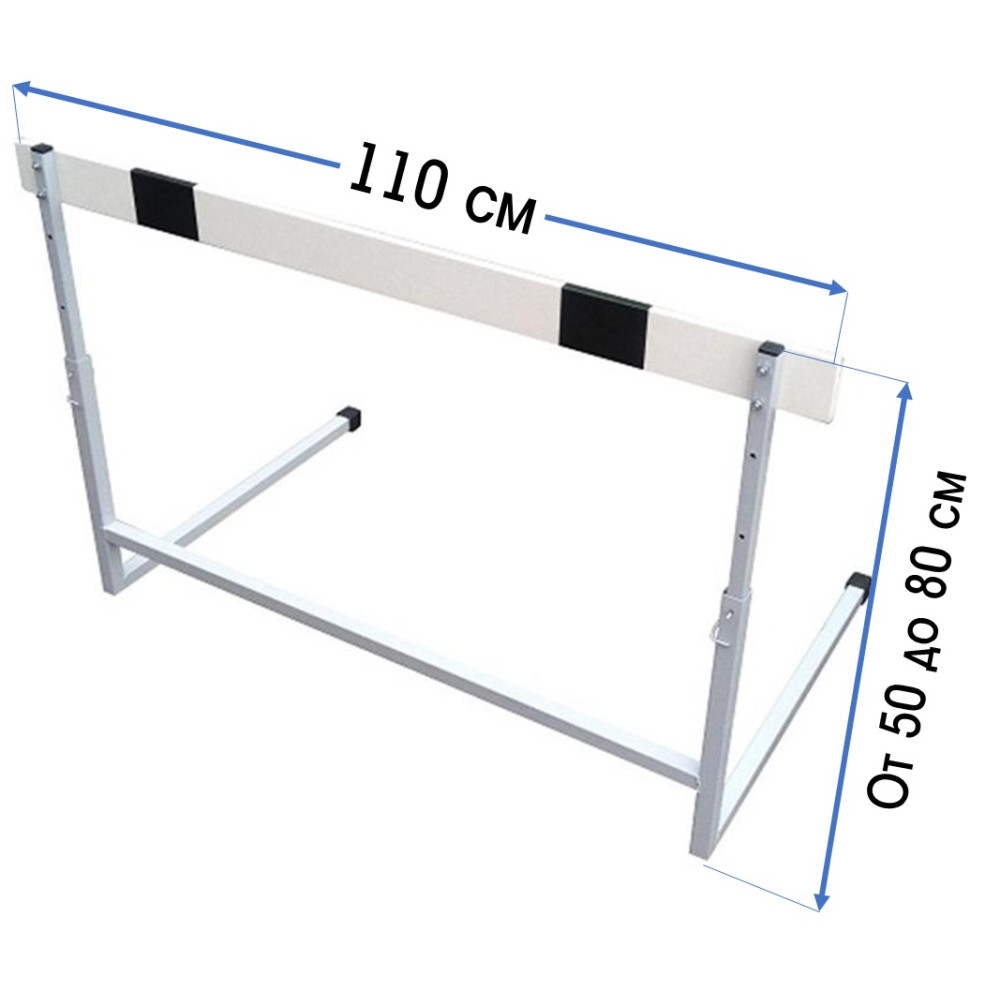 Барьер легкоатлетический юниорский высотой 50-80 см и шириной 110 см. Шаг регулировки высоты 7,5 см.