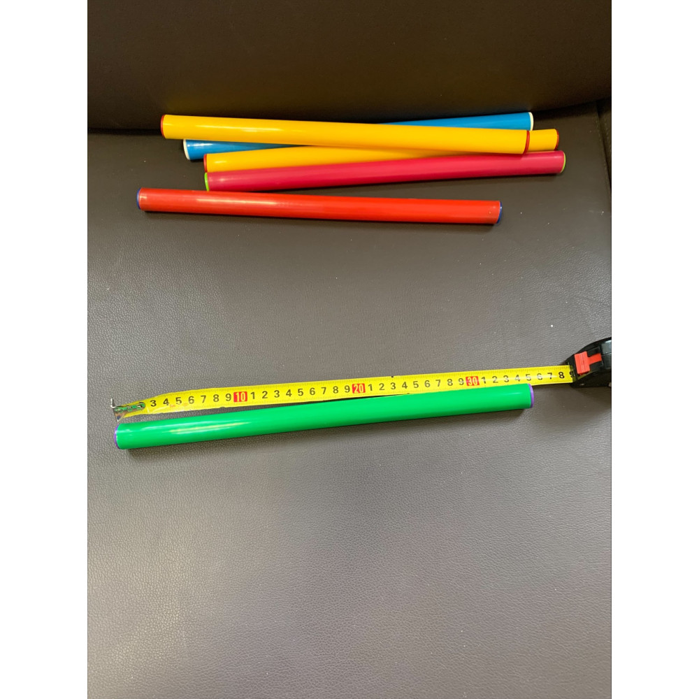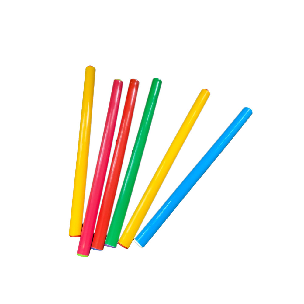Эстафетная палочка, выполненная из прочного пластика, имеет длину 35 см и вес 50 г, доступна в разнообразных цветах.