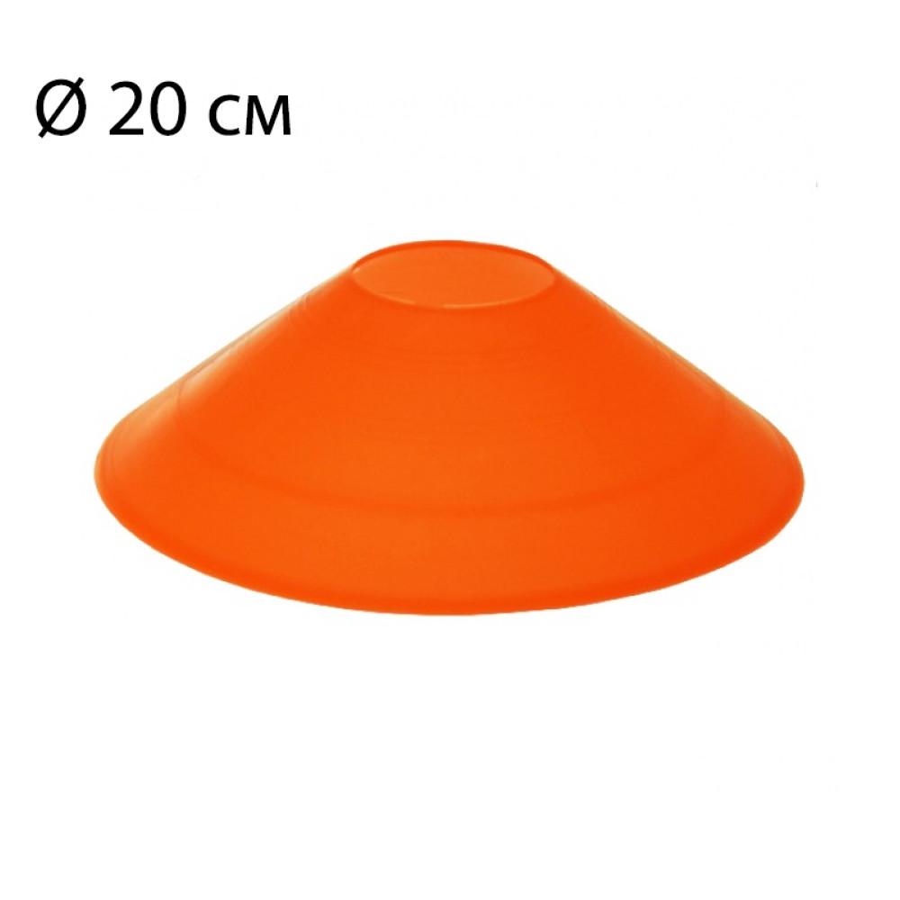 Конус разметочный оранжевый предназначен для обозначения границ на спортивных площадках и имеет диаметр 20 см и высоту 5 см.