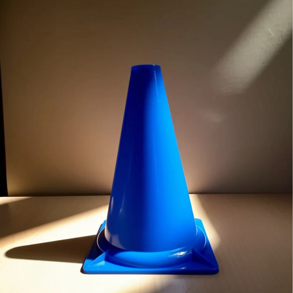 Пластиковый твёрдый конус синего цвета, высотой 32 см, идеально подходит для тренировки и разметки пространства на спортивных площадках.