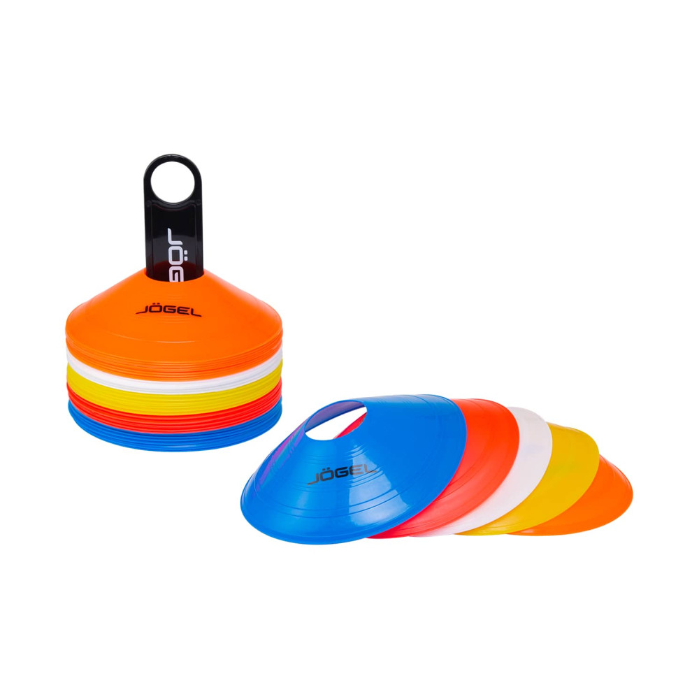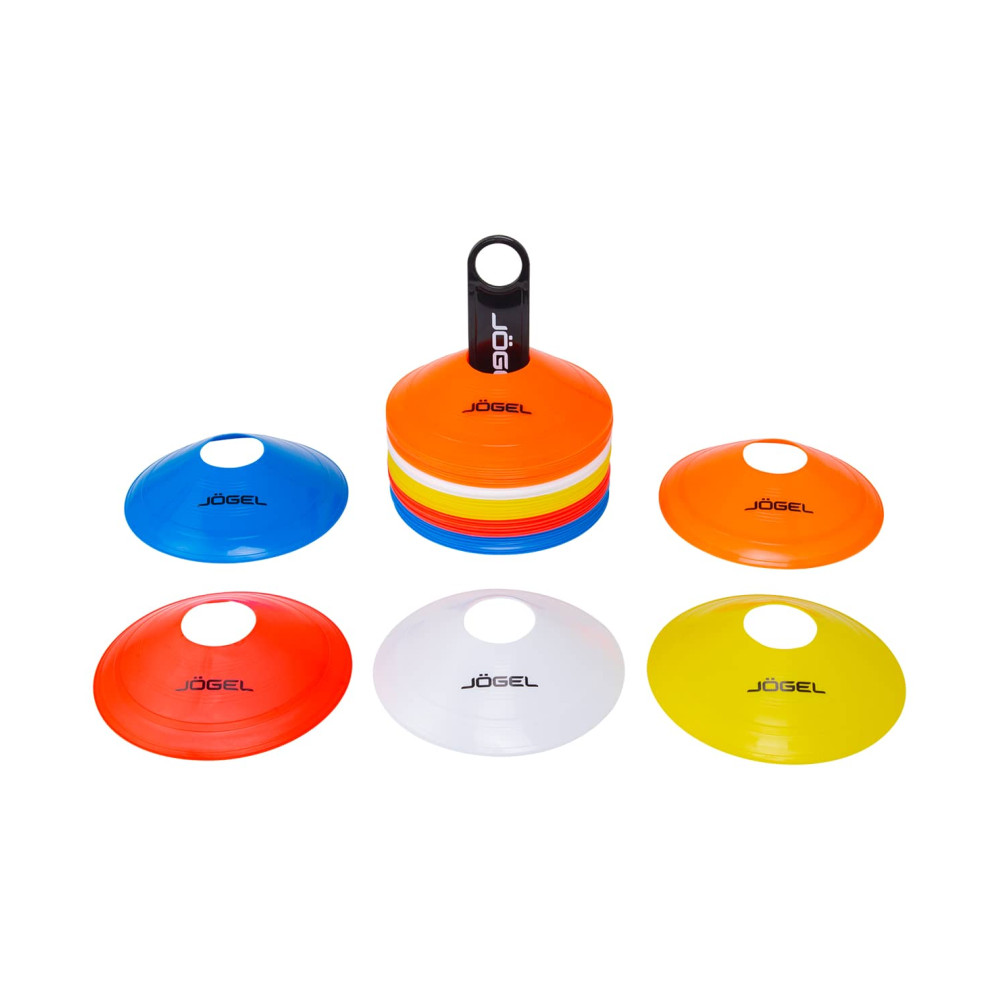 Набор фишек для разметки поля JA-225 включает 50 штук цветных пластиковых фишек с высотой 4 см и диаметром 19 см, идеально подходящих для спортивных площадок и тренировок.