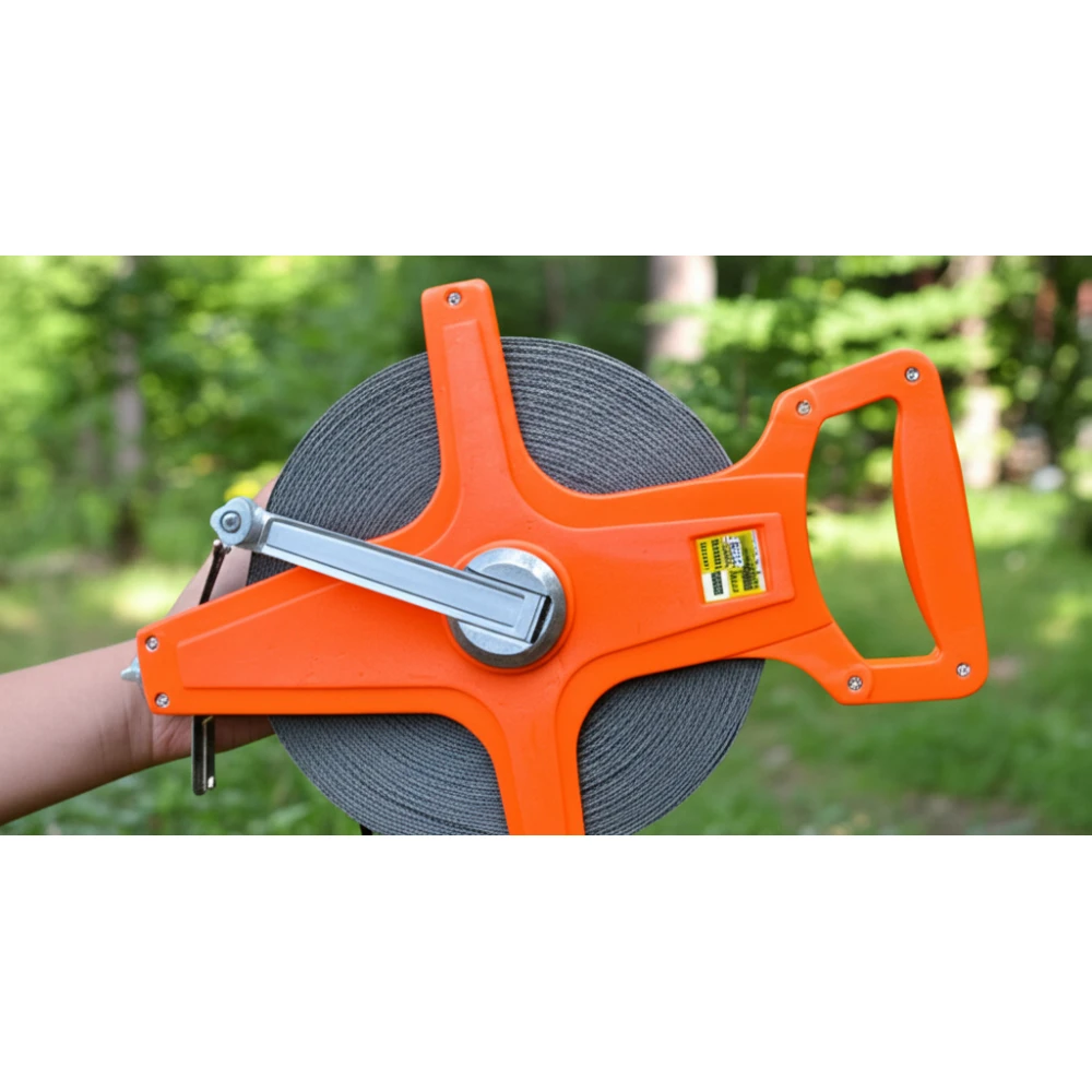 Рулетка спортивная 100 м с ручкой предназначена для точных измерений и разметки в спортивных соревнованиях.