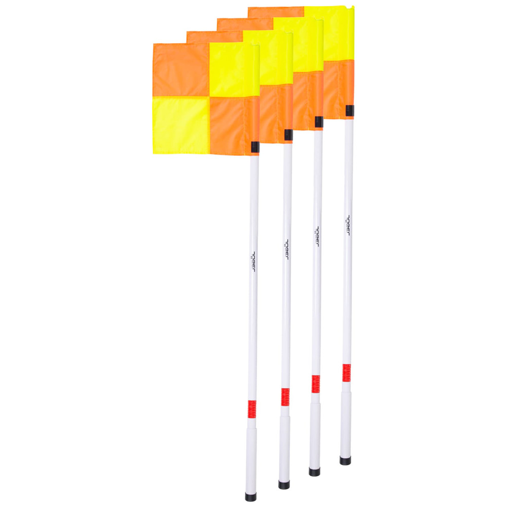 Флаг угловой Jögel в комплекте 4 штуки, выполненный в желтом и оранжевом цветах, с диаметром шеста 3,2 см.