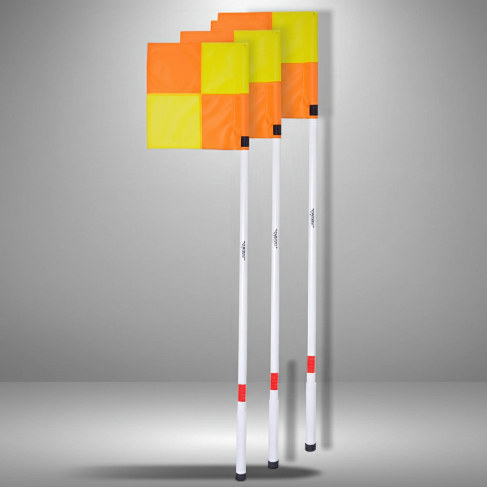 - Яркие цвета: желтый и оранжевый цвета флагов делают их хорошо заметными на поле, что важно для судей и зрителей.