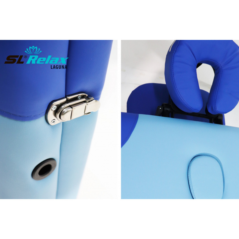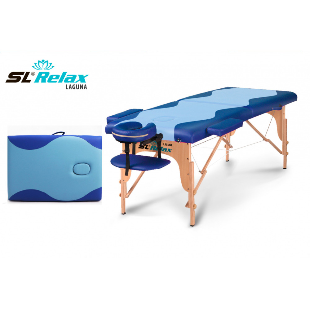 Массажный стол складной Laguna BM2523-3 бренда SL Relax представляет собой портативное оборудование, подходящее для различных массажных услуг, с регулируемой высотой и компактными размерами для удобной транспортировки.