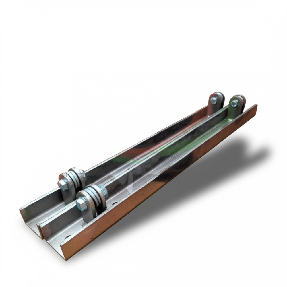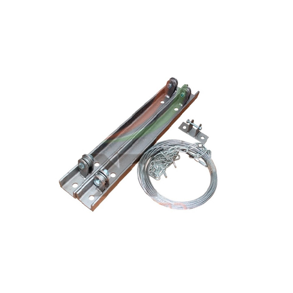 | Комплект | консоль 2 шт, кронштейн 1 шт, ролик 4 шт, болт М14*160 1 шт, гайка М14 1 шт, ось ролика 4 шт, коуш 4 шт, зажим 8 шт, цепь 0,7 м, трос 5 мм 2 шт по 7 м, заглушка 80*40 4 шт |