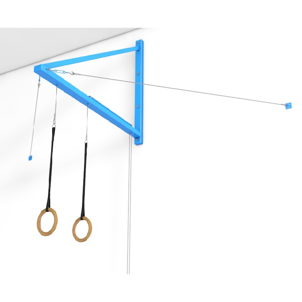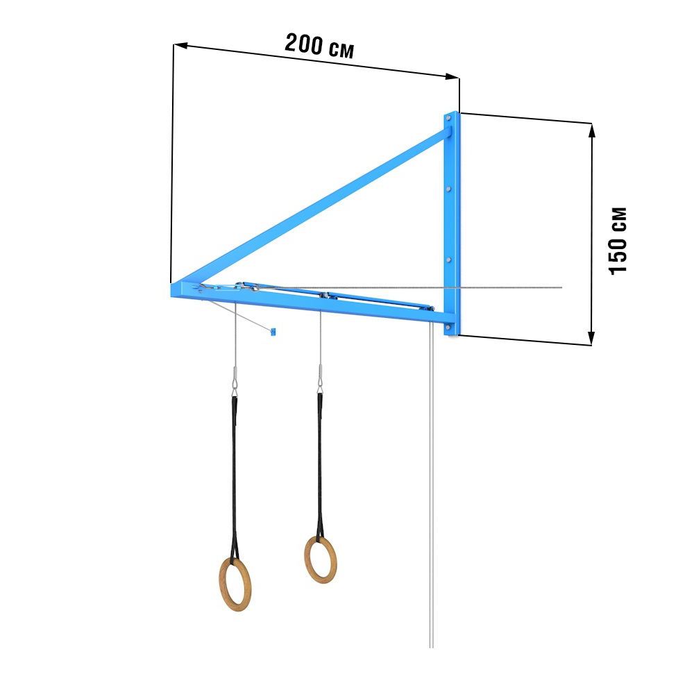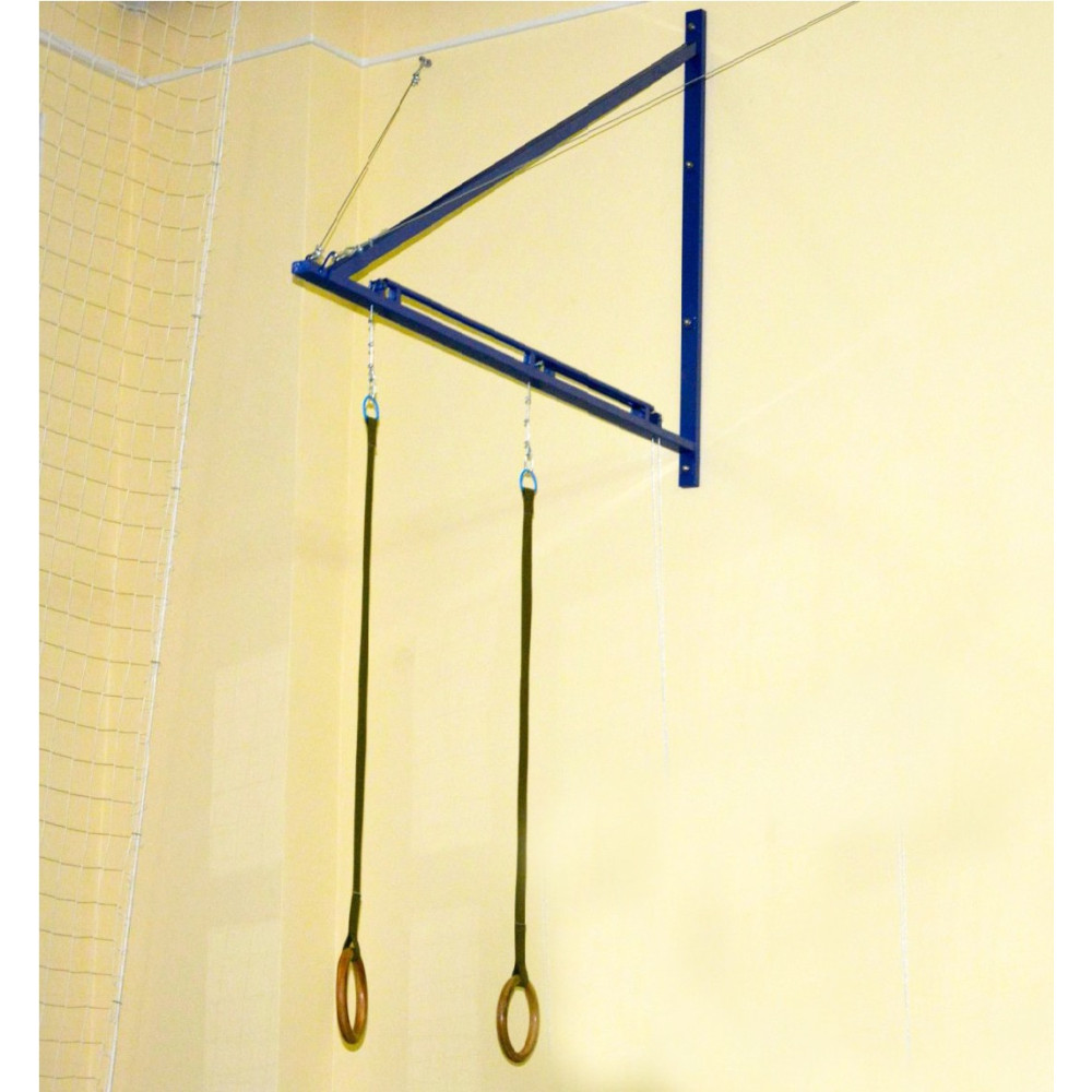 Подвеска для гимнастических колец (пристенная) - это надежная и удобная конструкция для установки в спортивных залах с выносом 2 метра и регулировкой высоты колец.