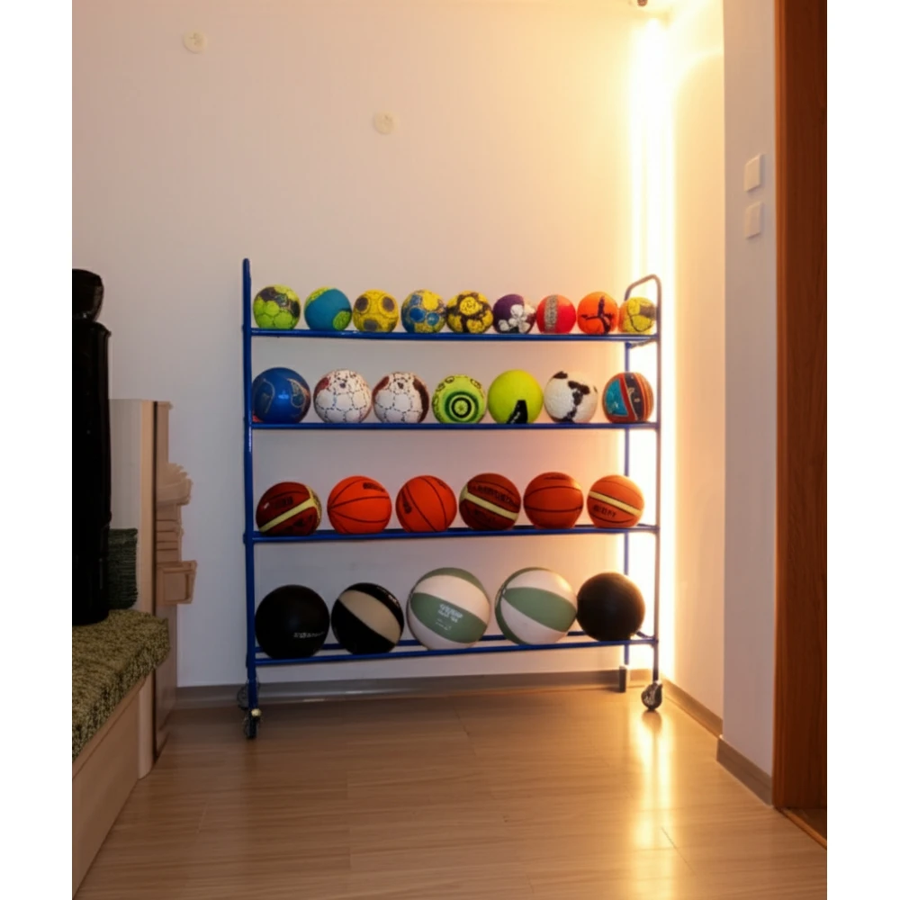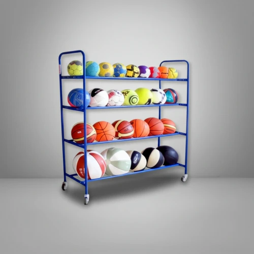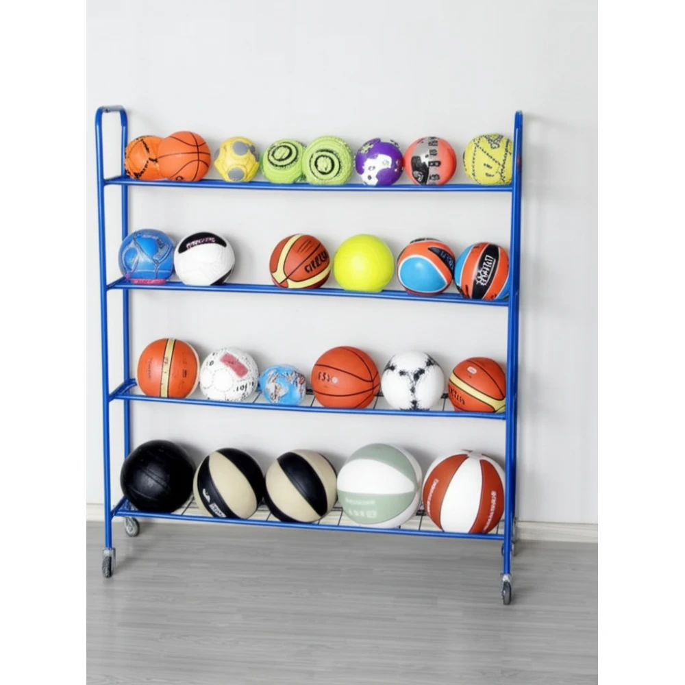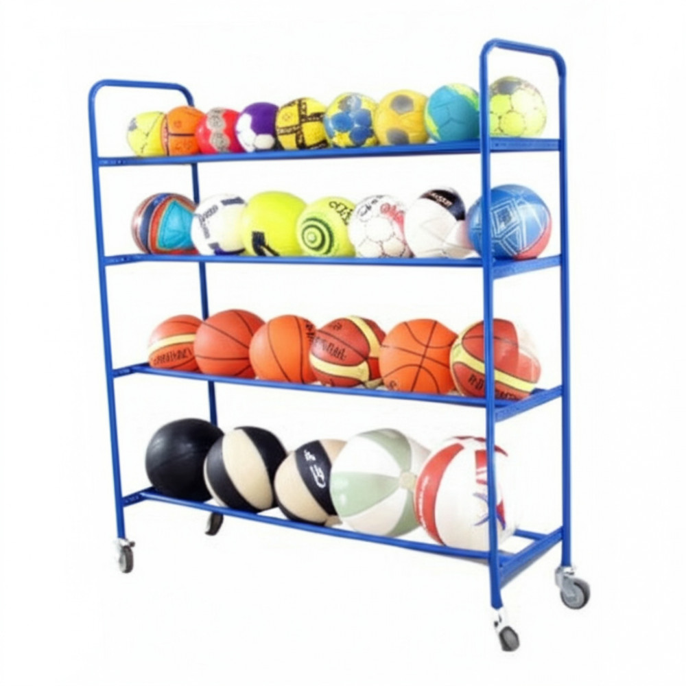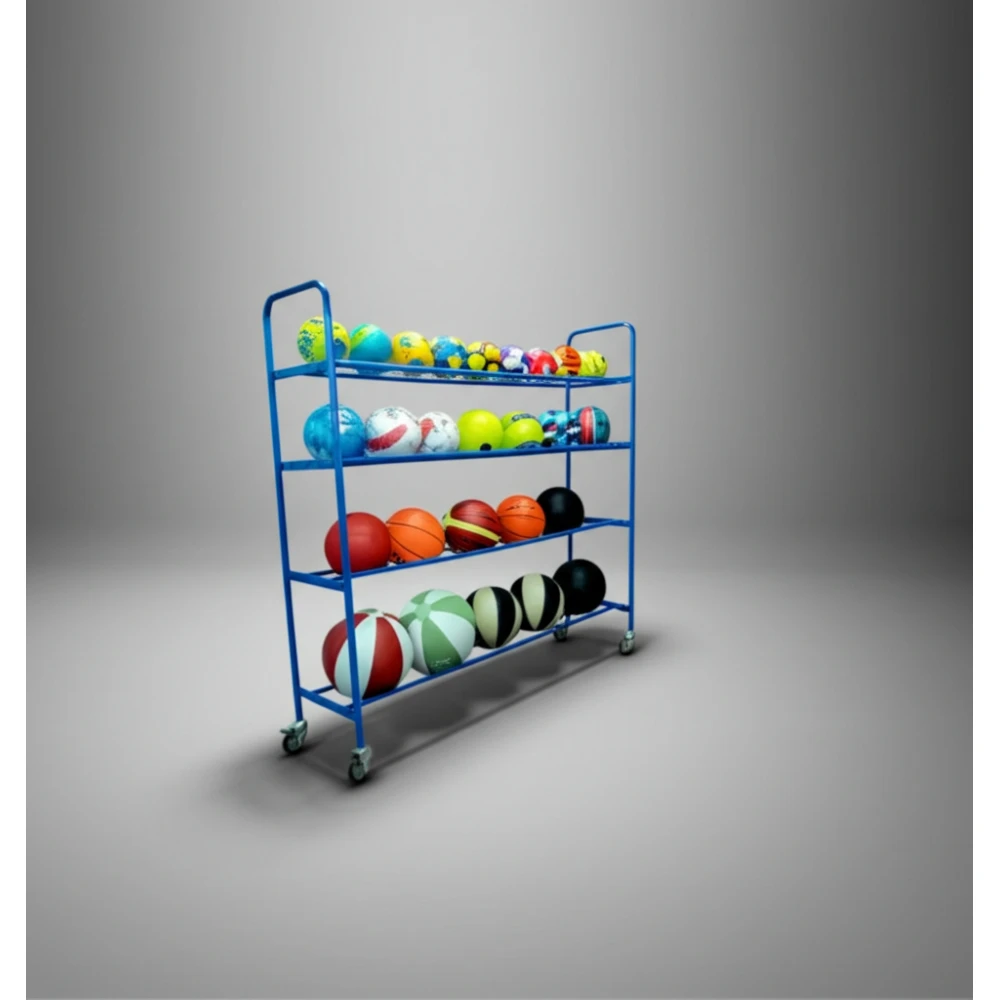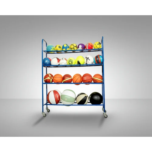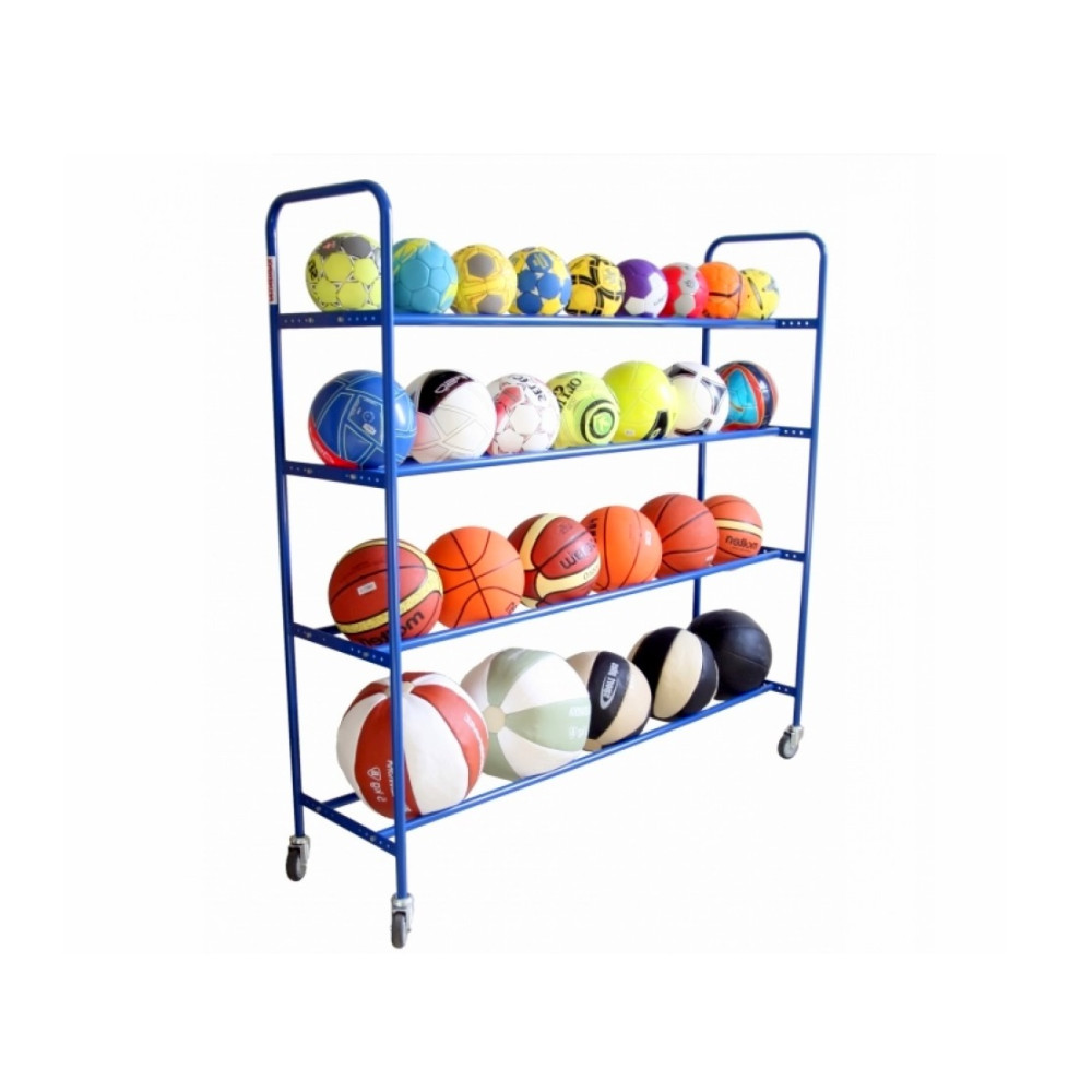 Данная конструкция на колесиках позволяет использовать её как стеллаж для хранения мячей и для их перевозки. Изготавливается для мячей различного диаметра и под разные виды спорта, такие как волейбол, баскетбол футбол и мини-футбол.