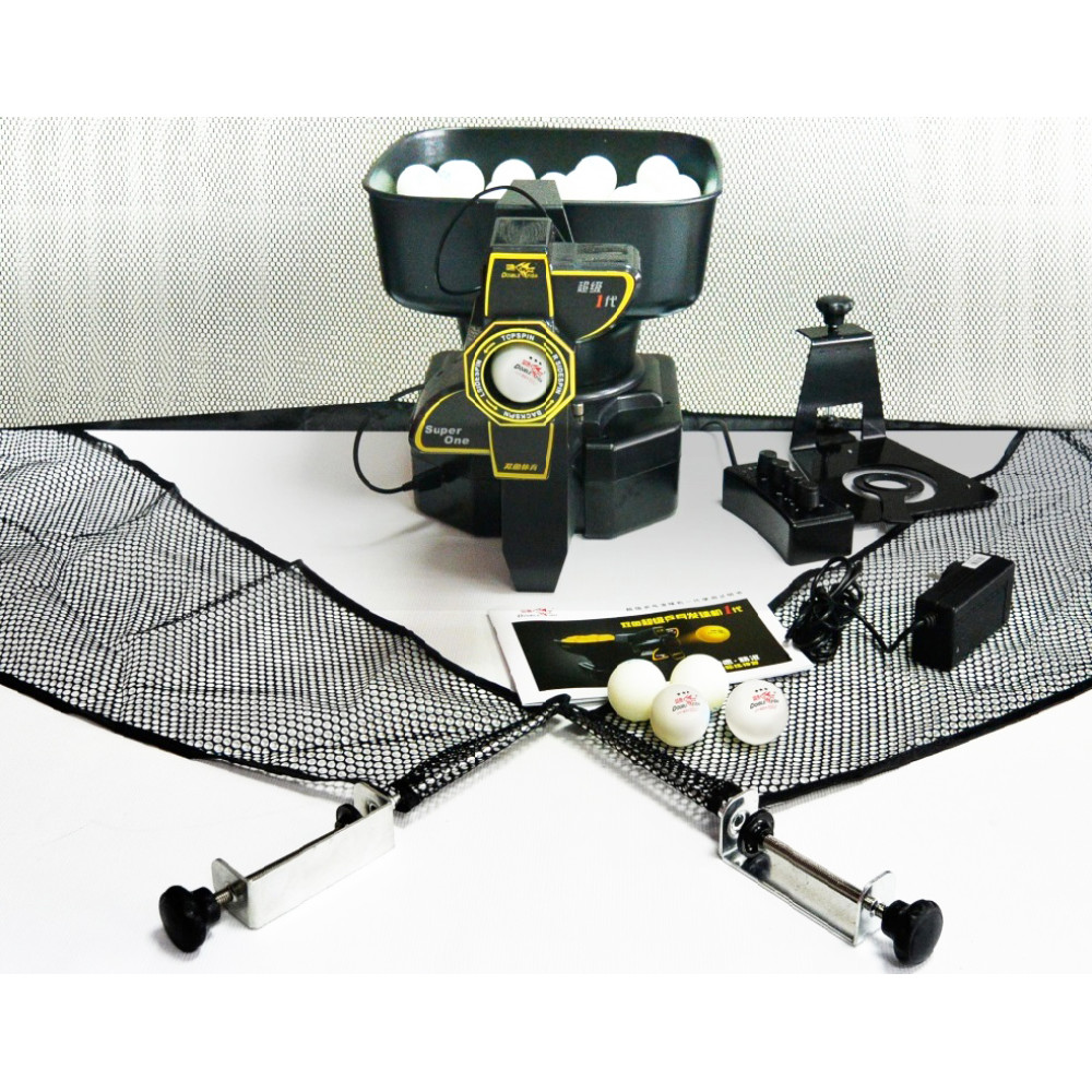 Тренажер для настольного тенниса Double Fish - ТТ-01 оснащен регулировкой угла наклона и направления подачи, скоростью подачи от 4 до 40 м/с, что делает его идеальным для тренировки различных уровней игроков.