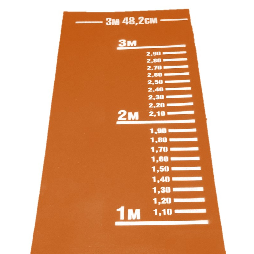 - Разметка от 1 до 3 метров с шагом 10 см нанесена стойкой краской;